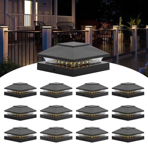 4x4 Solar Fence Post Lights Outdoor Waterproof Deck Cap 12 Pack