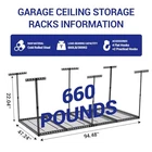 Menu 1. We require immediate payment. 2. We currently accept payment via eBay managed payments only. 3. Once payment is cleared, we will dispatch your shipment within 1-3 business days. Please refer to the "Shipping" tab for more information regarding shipping speed to your destination. 4x8 FT Overhead Garage Storage Rack, Adjustable Garage Storage Organization Systerm, 660LBS Weight Capacity Heavy Duty Metal Garage Ceiling Storage Racks, Black, Vertical Post x 6 Product description ?【Built to Last with 660LBS Capacity】Constructed from heavy-duty cold-rolled steel, our garage storage shelves are engineered to hold up to 660 pounds. With thick M8 screws and reinforced steel bars, it s secure connections. Extra mounting holes help prevent shaking and deformation, offering unmatched strength for heavy-duty storage needs. Whether you’re storing large tools or bulky items, this garage shelving system has you covered. ?【Maximize Space with Generous 105 Cu ft Capacity】With maximum dimensions of 96" x 48" x 40", this garage ceiling storage rack utilizes your ceiling space to create an organized and clutter-free garage environment. Unlike traditional floor storage, this ceiling-mounted rack’s grid design ensures easy access to stored items, making it the perfect solution for garage organization and freeing up valuable floor space. ?【Adjustable Height for Custom Storage Solutions】Tailor your garage storage shelves to suit your specific needs with an adjustable height ranging from 22" to 40". This flexibility makes the rack ideal for various ceiling heights and storage requirements. Whether you’re looking to store seasonal items or larger tools, this garage ceiling storage rack adapts to your space and optimizes vertical storage. ?【Heavy Duty Design for Maximum Storage Efficiency】Our garage shelving system features a robust integrated grid design that greatly enhances the structural stability compared to traditional wire racks. This innovative grid pattern ensures strong support, providing a secure way to store your belongings. Perfect for garage organization, it promises durability and longevity, making it the ideal garage ceiling storage rack for your overhead storage needs. ?【Stylish and Durable Rust-Proof Coating】Our garage shelving comes with a stylish rust-proof coating, providing both aesthetic appeal and added durability. The easy-to-clean painted finish resists corrosion, ensuring your garage organization remains pristine over time. This rack not only serves as a functional garage ceiling storage solution but also enhances the overall look of your garage. NOTE: This garage storage rack is designed for mounting on wood studs/joists and concrete walls only, suitable for ceilings with a tilt angle of less than 15 degrees. It ensures optimal stability and safety, perfect for your long-term storage needs. PLEASE MESSAGE US IF YOU HAVE ANY OTHER QUESTIONS, AND MANY THANKS FOR READING ALL OF THIS. Copyright ©#. All Rights Reserved.