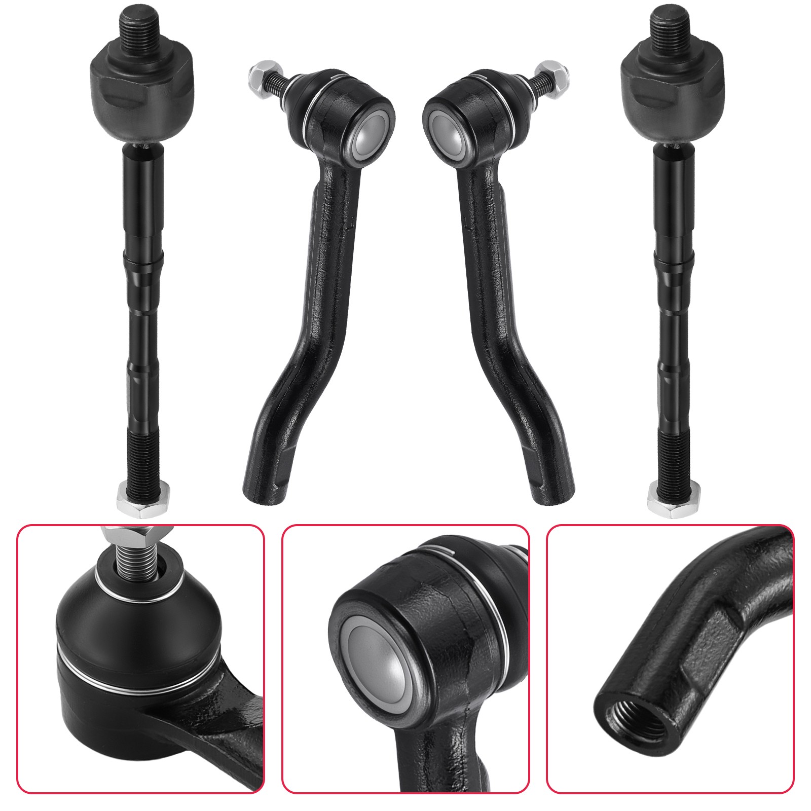 Fitment: 2017 - 2019 Nissan Qashqai All Models 2014 - 2020 Nissan Rogue All Models 2017 - 2022 Nissan Rogue Sport All Models Description: Replacement OEM ( Original Equipment Part) Number: ES801221:D86404BA0A ES801220:D85204BA0A EV801396:D85214BA0A, D8E214BA0A Placement on Vehicle: Front, Left, Right,Inner, Outer Package included: 1x Front Outer Tie Rod Assembly - Driver Side - ES801221 1x Front Outer Tie Rod Assembly - Passenger Side - ES801220 2x Front Inner Tie Rods - Driver and Passenger Side - EV801396 Fitment: 2017 - 2019 Nissan Qashqai All Models 2014 - 2020 Nissan Rogue All Models 2017 - 2022 Nissan Rogue Sport All Models Description: Replacement OEM ( Original Equipment Part) Number: ES801221:D86404BA0A ES801220:D85204BA0A EV801396:D85214BA0A, D8E214BA0A Placement on Vehicle: Front, Left, Right,Inner, Outer Package included: 1x Front Outer Tie Rod Assembly - Driver Side - ES801221 1x Front Outer Tie Rod Assembly - Passenger Side - ES801220 2x Front Inner Tie Rods - Driver and Passenger Side - EV801396