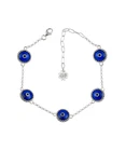 Sterling Silver Dark Blue Evil Eye Women Link Bracelet Designed by our artisan, strong rolo chain, each 5 bead is wrapped by silver 17 prongs from front and back side. The Evil Eye is a powerful amulet that has been used for centuries. It wards off the "Evil Eye" and protects you from bad luck, envy, and gossip. Measure for all bracelets is approximately 0.45" width, the length is 7.00" and it has 2.00" extension. Total length is 9.00". Easy adjustable for your wrist. Bracelet weight is 4.40 gr / 0.15 oz. Secured with lobster claw clasp. Comes with a free velvet pouch and a gift box.