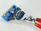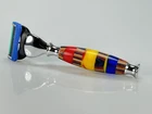 5 Blades Shaving Razor Cartridge Safety Razor Art Wood Resin Epoxy Handle. Really beefy handle man size razor Over all Length with out blade 5.5" inches Approx. 1* razor comes with 1 blade . Only