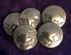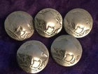 Vintage Authentic Buffalo Nickel Buttons Old No Visible Dates on coins Lot of 5 Loop Back may be vertical or horizontal