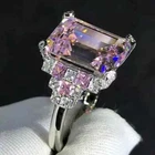 4 Carat Pink Emerald Cut Basket Bead-set Band VVS 14K Rose Gold Moissanite Ring