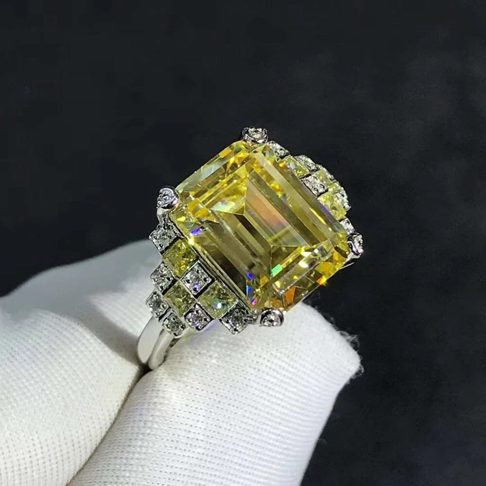 5 Carat Emerald Cut Moissanite Ring Vivid Yellow VVS Side stone Plain Shank ๐ Available Metals: A) 5X Platinum Vermeil, B) Solid 10K Gold, C) Solid 14K Gold, D) Solid 18K Gold, E) Solid 950 Platinum. โ HIGHEST QUALITY Certified White Gold, Rose Gold, Yellow Gold & 950 Platinum. (Not Trash). ๐ Ring Size: 2,3,4,5,6,7,8,9,10,11,12,13,14,15,16 and anything between these ring sizes available. It could be 1/4, 1/2, or 3/4. We Fit It to your Exact Finger Size no matter what size you want. ๐ Main Stone: HARDEST Quality VVS GRA Certified Hand Cut Moissanite (Pass Diamond Testers) โจ Side Stones: Premium Quality VVS Moissanite. (Pass Diamond Testers) ๐ Certified: GRA - GRC ๐ Polish: Excellent Polish. Shiny & Clean for Maximizing Sparkles. โฆ Cut: Hand cut Excellent cut & Symmetry with Crisp & Sharp Edges/Corners. ____________________ ๐ 100% Handmade with GORGEOUS & Accurate Details. Itโs an Art, not only a Valuable Material. ๐ 60 Days Money Back Guarantee for Any Reason even if you don't Fall In Love with it. ๐คฏ FREE LIFETIME Main Stone Warranty & Side Stone Replacement. (No Color Change). ๐ FREE LIFETIME Jewelry Cleaning & Re-plating. ๐ Hypoallergenic. Skin Friendly. Doesnโt cause any type of Allergies. ๐ Customizable with/to Your Favorite Stone/Jewelry Type & Shape. ๐ FREE STUNNING Random GIFTS On Every Order (we sell them for +$200 up to over +$700). ๐ฅฐ Amazing Wooden Gift Boxes for Your Main Jewel & its Gifts. ๐ฅณ Gift Wrapping Available (we wrap with no tags or receipts, ready to present). ๐คฉ VIP Customer Service to Make Your Dreams Come True in the Most Fantastic Way. ๐ FREE SUPER FAST FedEx Express Shipping. ____________________ ๐โ + Our 5X Platinum Vermeil: Platinum is 9.4 times RARER & slightly more DURABLE than gold. Rings with platinum end up more EXPENSIVE than gold because the DENSITY of platinum is a lot HIGHER and the QUALITY is EXTREMELY PURER. Rings THICKLY plated FIVE TIMES with platinum offer MUCH STRONGER PROTECTION against wear and scratches than gold plated jewelry. Therefore they LAST the LONGEST while giving you a SHINY LOOK ALL THE TIME. ๐โ + Our Rare Stone Quality: Here you have the NATURAL looking color of the diamonds in a RARE size with extraordinary VVS1 clarityโฆ Weโre offering the GREATEST QUALITY and VALUE at the BEST PRICE with this design by using very SPECIAL types of GRA Certified Moissanite stones. Natural diamonds in this color, clarity and size are super rare and very hard to find. Some of them easily cost over $10,000 per carat. (please message me for natural diamonds like this color, size and shape so I can give you the accurate price based on your preferences) ____________________ ๐ข๐๐ FREE FAST EXPRESS SHIPPING Processing + Shipping = Receiving Time PROCESSING: Only 1 available. This ring will be shipped within 48 hours. (Other sizes require customization for 2-3 weeks. ) SHIPPING: 2-6 days via FedEx Express for FREE โ Youโll get updated with the tracking code, once your package is shipped. โ We ship with insured FedEx only which is very secure. โ An adult signature is required at the time of delivery. _____________________ โ๐๐ CUSTOMIZATION/PERSONALIZATION: Custom orders with me are SUPER EASY & COMFORTABLE, no matter if youโve never done it before or youโve done lots of them. ๐ค I break down everything into small steps. And we go through the steps one by one together. On each step, youโll get to pick or guide me from the options I represent. ๐ Once we get to the end, your dream comes true. ๐คฉ๐ Because every single detail is just exactly what you want. ๐๐ ๐จ HOW TO DESIGN YOUR RING: A โ Send me some/one image similar to your idea. Or tell me whatโs your favorite shank, profile or stone? So I can show you some options to choose from. B โ Next, I will start designing it right away. Iโll send you some screen shots from what I designed. We can adjust any part of it together, until itโs exactly the way you want it to be. C โ After we get to the ideal conclusion, Iโll render several Ultra High Quality 3D images and a 4K video, so you see what the end result is gonna look like in reality. D โ The moment you approve everything, we start making it. Once itโs finished, weโll ship it the same day. + 3D IMAGE SAMPLES: Before you order yours, you can ask me for some samples of the 3D rendered images and videos. Youโre gonna absolutely love the quality, because they look like real rings. ๐คฉ๐ + Designing your dream ring with me is gonna be a fantastic experience. While you just sit and order, youโll watch how I take care of everything from your idea to the end product in the SIMPLEST & GREATEST way possible.โ โ------------ ๐ AVAILABLE GEMS: All stones are available - Colorless & Colorful Moissanite or Simulated Moissanite. Natural & Lab Grown Diamonds in Colorless or Colorful. Natural and Lab made Emerald, Ruby, Sapphire, Amethyst, etc. Just ask! ๐ฅ AVAILABLE METALS: All metals are available - 925 Sterling Silver, 5X Platinum Vermeil, 9K Solid Gold, 10K Solid Gold,14K Solid Gold, 18K Solid Gold (in Rose, White or Yellow), Platinum 950. ๐ AVAILABLE MATCHING PIECES: We can make matching pieces for this product. Engagement Rings, Bridal Sets, Wedding Bands, Earrings, Studs, Hoops, Bracelets, Bangles, Necklaces, Pendants, and anything youโd dream of. We can design all to set with this item. ๐จ๐จ๐ง๐ฆ AVAILABLE OTHER JEWELRY: We make jewelry as per occasion and celebration like birthdays, birth months, anniversaries, motherโs day, valentine's day, fatherโs day, memorials, thanksgiving, zodiac signs, graduation days, and many more per your request. ____________________ โโโโโ 5 STAR PRISTINE PROMISES: โฆ๏ธ 100% Satisfaction Guaranteed โฆ๏ธ Ethically Sourced โฆ๏ธ FREE Lifetime Ring Resizing โฆ๏ธ FREE Complimentary ENGRAVING โฆ๏ธ 100% 
