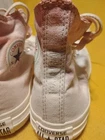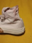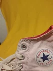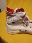 $5 Clearance Converse all star high tops, white, women's size 6. PLEASE READ DETAILS These shoes are in excellent pre-owned condition...except for the discoloration, looks like the red dye from inside the shoes stained the outside some. I tried to show this in the pictures. "Ms Marvel" is stitched on the back of the shoes. These are really unique and a great find for those who know how to restore shoes in this condition. Priced to sell as is. $5 Clearance!