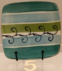 They are all in excellent condition, there are no chips, cracks, crazing, breaks or stains. We ship with TLC Fast shipping Enhance your dining experience with this set of five Crate and Barrel Lago Appetizer Plates. Each plate measures 6.75 inches and features a striking square shape with blue-green stripes. These plates are perfect for serving a variety of dishes, including bread and butter, appetizers, desserts, or salads, making them a versatile addition to any occasion. Crafted from high-quality stoneware, these plates are sure to impress your guests. The set includes five salad plates, each with a printed backstamp indicating their authenticity. Made in Portugal, these plates are a great addition to any kitchen.