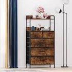 Wooden Storage Tower Chest of Drawers with 5 Drawers Storage & 4 Hooks, 47.2" Tall Dresser Organizer Unit Closet with 2 Open Shelves, Fabric Dressers for Bedroom, Living Room Furniture-Grey/Brown/Pink 【 5 Closet Storage Drawers of 2 Sizes 】: This closet drawer organizer is featured with 5 drawers, perfect for organizing clothes, toys, socks, underwear, scarves, blankets and other accessories. 3 large ones measured of 22 x 11 x 7.8 inches each, 2 medium drawers measured of 10.6 x 10.6 x 7.8 inches each. Clothes drawer design purpose is to keep your cloths away from dust, dots or other pollution. This closet organizer bins not only act role on storing clothes, but also protect your health. 【 2 Open Shelves with Side Panels Design 】: This dresser organizer are measured of 23.6 x 11.8 inches, which is wide enough to store things. Top can display vases, photo frames, lamps etc decorations, the second one can place glasses, alarm clocks, books, chargers and other sundries etc ordinary things. This open shelves design is convenient and practical, also artistic as a decor with drawer unit. This storage chest for bedroom side panel can perfectly prevent things from falling and keep safe. 【 4 Hooks Cloth Dresser 】: Besides the closet drawers for clothes, this organizer also designed with 4 side S hooks, which is easily movable and perfect for hanging hats, scarves, hairband, handbags, umbrellas or hurry bags. Anti-scratch treatment at the both end of the hooks make hanging fabric issues safe and avoids damage to your clothes or clothing things. You can also store these hooks in the drawers if you do not need them. Very flexible and convenient details design. 【 Sturdy Anti-tip Kit & Adjustable Feet Structure 】: The chest of drawer is made with sturdy metal frame, and its back is equipped with more reinforced crossbar, which offers high strength support and ensure years of use. Anti-toppling device is provided to prevent it from falling down. Height adjustable feet makes it more easy to keep balance and prevent wooden floor from scratches. These all enable our bedroom closet to bear a large capacity clothes and good bearing. 【 Safe Non-woven Fabric & MDF Materials 】: The wooden drawer chest is made of solid and wear-resistant MDF and healthy non-woven fabric. With high quality breathable non-woven synthetic fabric as surface layers, MDF board as middle layer, our fabric drawer organizer of special 3-layer structure design is more durable, flat and not easily deformed compared others only fabric layer. Additionally, our whole dresser organizer for bedroom material has been tested, you can have no worry to store clothes 【 Easy to Assemble & Cleaning 】:The package includes all the tools and accessories, you can install it in 20 minutes with the instruction. The wood dresser is slim and light, and does not take up much space. Perfect Gift for a housewarming or your family and friends. Overall dimension: 23.6"D x11.8"W x 47.2"H. And it is easy to do the maintenance, wipe with a damp cloth and let air dry.