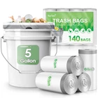 140 counts 5 gallon white strong drawstring trash bags fit 18-20 L trash can for home office kitchen bathroom bedroom. These garbage bags are made of newest pure HDPE material, durable and strong to handle daily household garbage. They arrive in a neat roll, easy for storage and enough to meet daily need. Premium Quality: Our trash bags are made of newest pure HDPE material which has proper thickness and perfect for lightweight materials and has excellent resistance to puncture and moderate resistance to tearing, durable, leakproof and odor control. Convenient Drawstring Handles: The strong drawstring let a tight grip on trash cans , so there is no messy bag overhang or bunching. Multipurpose: Our trash bags are suitable for use in bathroom, bedroom, living room, dining room, office and cleaning pet’s litter and baby diapers. Strong Enough to Carry Daily Trash: trash bags are made of high quality material, provides advanced rip and tear protection. Size for Small Trash Cans: They arrive in a neat roll, easy for storage. Handle daily household garbage and everyday demands with our trash bags.