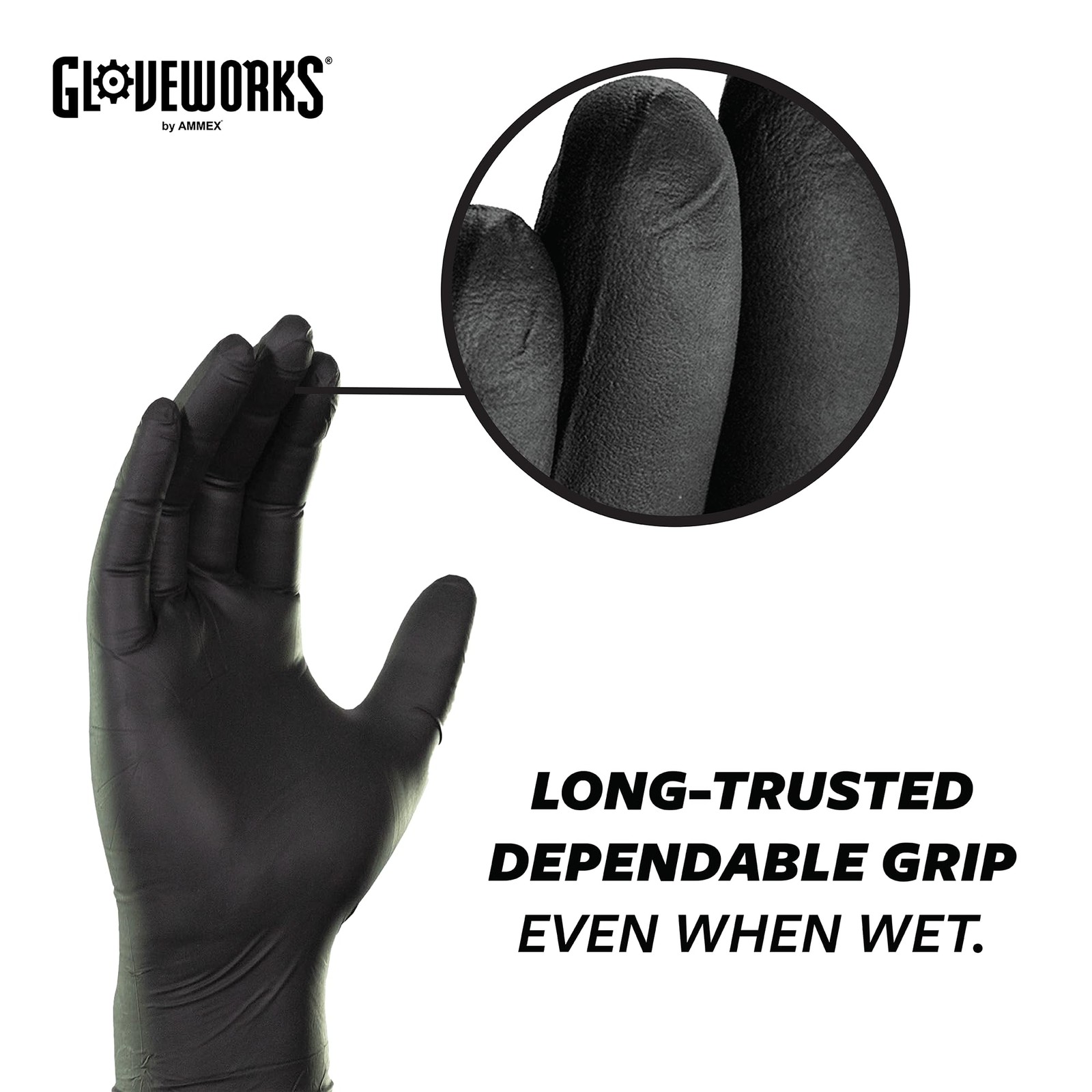 MEDIUM-DUTY: Our 5-mil nitrile gloves provide better barrier protection against grease, gasoline, & other petroleum-based chemicals than standard 3 mil gloves. Suitable for extended-duration use. SLEEK & PROFESSIONAL: Black color conceals dirt, grease, and grime making it a great choice for automotive shop & detailing tasks, high-end restaurants, and many other common workplace environments. LIGHTLY-TEXTURED: Micro-roughened to provide a more reliable grip. Thin construction promotes tactile sensitivity and dexterity- ideal for working with automotive tools and precision instruments. LATEX-FREE ALTERNATIVE: Nitrile is suitable for use by those who are sensitive to rubber latex and delivers a comfort level rivaling that of latex. Designed for medium-duty and extended-duration use. VERSATILE & PRACTICAL: Commonly purchased for auto repair & detailing, oil changes, mechanics, front-of-house restaurant & hospitality staff, manufacturing, painting, household cleaning, and more.