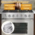 5 P Stainless Steel Look Control Knob Kits For GE Gas Range Stove WB03X24818*&& Description: Wide Application: Surface burner knob WB03X24818 lets you control the heat of the surface burner on the range. WB03X24818 Knob Replaces AP5989029, PS11729081 Compatible with ge gas stove. Applicable to the following models, not all: JGBS62REK1SS, JGBS66REK3SS, JGB860EEJ2ES, JGB860SEJ2SS, JGB860SEJ1SS, JGB720SEJ4SS, JGB720SEJ5SS, JGB645EEK2ES, JGB720EEJ4ES, JGB720EEJ2ES, etc. Check your furnace model and find out the part number of the knob that is campatible with it. Upgrade Quality: Our wb03x24818 gas stove knobs are made of highly durable materials, and the threaded mounting holes are reinforced with additional iron pieces, rigorously tested, compact & sturdy, heat resistance and wear resistance. After treatment, the surface of stainless steel has more texture and luster. Product Specification: Finish Type: Stainless Steel. Item Dimensions LxWxH: 2.25 x 2.25 x 1.9 inches. Shape: Round. This knob features bold markings for OFF, Lo, 1, 2, 3, 4, 5, 6, 7, 8, 9, Hi, and LITE. Our gas stove knobs which can help your stove look more uniform and beautiful. Easy Installation: Pull the knob directly from the column, remove it, and replace it with our knob. It is pretty easy to replace new parts on your model. Do not bend the knob up or down. If a handle is particularly stubborn, use pliers to remove it. Align the new knob holes and push them directly onto the shaft until they stop rotating. Repairing appliances by yourselves will save time and money. Please see Model Number fitment information at the bottom of this page before placing your order for this part. Package Included: 5 x Range Control Knob WB03X24818 Part Number WB03X24818 (AP5989029) replaces 4363588, PS11729081. Color: Stainless Steel Look Model Number Description: JGB645EEK1ES GAS RANGE JGB645EEK2ES GAS RANGE JGB660EEJ1ES GAS RANGE JGB660EEJ2ES GAS RANGE JGB660EEJ3ES GAS RANGE JGB660EEJ4ES GAS RANGE JGB660SEJ1SS GAS RANGE JGB660SEJ2SS GAS RANGE JGB660SEJ3SS GAS RANGE JGB660SEJ4SS GAS RANGE JGB700EEJ1ES GAS RANGE JGB700EEJ2ES GAS RANGE JGB700EEJ3ES GAS RANGE JGB700EEJ4ES GAS RANGE JGB700SEJ1SS GAS RANGE JGB700SEJ2SS GAS RANGE JGB700SEJ3SS GAS RANGE JGB720EEJ1ES GAS RANGE JGB720EEJ2ES GAS RANGE JGB720EEJ3ES GAS RANGE JGB720EEJ4ES GAS RANGE JGB720SEJ1SS GAS RANGE JGB720SEJ2SS GAS RANGE JGB720SEJ3SS GAS RANGE JGB720SEJ4SS GAS RANGE JGB860EEJ1ES GAS RANGE JGB860EEJ2ES GAS RANGE JGB860EEJ3ES GAS RANGE JGB860EEJ4ES GAS RANGE JGB860EEJ5ES GAS RANGE JGB860EEJ6ES GAS RANGE JGB860SEJ1SS GAS RANGE JGB860SEJ2SS GAS RANGE JGB860SEJ3SS GAS RANGE JGB860SEJ4SS GAS RANGE JGB860SEJ5SS GAS RANGE JGB860SEJ6SS GAS RANGE JGBS62REK1SS GAS RANGE JGBS66EEK1ES GAS RANGE JGBS66EEK2ES GAS RANGE JGBS66EEK3ES GAS RANGE JGBS66REK1SS GAS RANGE JGBS66REK2SS GAS RANGE JGBS66REK3SS GAS RANGE