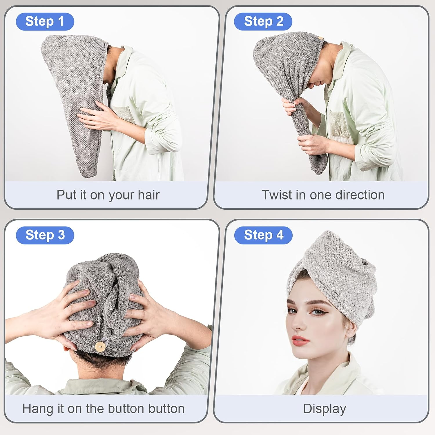 Store New Arrivals Add to Favorite View Feedback Contact Fast deliveries to the customer's home Quality customer service John Make the customers happy! 5 Pack Microfiber Hair Towel, Hair Towel Wrap for Women, 5 Colors Hair Turban Towel, Hair Drying Towels, Hair Plopping Towel Curly, Head Towels Wrap, Hair Wraps for Women Wet Hair anti Frizz Description 5 Piece Package: The set contains 5 microfiber hair towel in different colors, and you can choose beautiful colors no matter what you are wearing Large Size: With a hair towel wrap for women size of 26 x 10 inches, you'll never have to worry about slipping again! All you need to do is wrap the hair turban towel around your hair, twist and fasten the loop on the button Fast Water Absorption: Hair drying towel are made of high-quality microfibers that quickly absorb moisture, compared with ordinary hair plopping towel curly, the drying time is significantly shortened Durable: The edge of the microfiber hair towel is reinforced and will not be easily split, which greatly extends the service life. After hundreds of machine and hand washes, the head towels wrap for women is still intact Suitable for All Hair Types: When using hair drying towel, whether your hair is long, short, straight, dyed, voluminous, or stylish, our hair towel wrap for women can meet your needs Product Name: Microfiber hair towel Product Size: 26 x 10 inches Product Quantity: 5 Pack hair towel wrap for women Product Color: 5 Colors (pink, grey, light purple, light grey, light blue) Super Absorbent Towel + Quick Dry Hair turban towel made of microfiber - super absorbent and super soft. Breathable, odorless and gentler on other hair drying towel, pineapple lattice design, increases the contact area between the hair and the towel for faster drying and more breathability Large Stretch Loop + Solid Button Hair plopping towel curly is designed with high quality elastic loops. The elastic band holds the microfiber hair towel in place without being too tight or too loose. Unique stretch loop and button system keeps the hair towel wrap for women in place without falling off. Improves wearing comfort Outstanding Durability The edges of the hair turban towel are reinforced so that it won't deform or shrink after multiple hand/machine washes, allowing it to last longer Tip: Head towels wrap for women are vacuum packed. After receiving the product for the first use, it will regain its fluffiness Unit Count 1.0 Count Style Casual Product Dimensions 26"L x 10"W Number of Items 5 Color Multicolor Pattern Solid Country of Origin China Item Weight 14.4 ounces Towel form type Hair Towel Age Range (Description) All Ages Special Feature Breathable Fabric Type 100% Microfiber ABOUT US We offer the best prices around on high quality products. Our E-store includes media such as books, movies, music and games while offering electronics, toys, sporting apparel, clothing, tools, general home, garden items and more. SHIPPING We are always working hard to ensure your package arrives as soon as possible. Please understand that some factors like weather, high postal traffic, and the performance of shipping companies are outside of our control. We offer free shipping to the lower 48 states and ship within 2 business days of payment, usually sooner. We do not accept P.O. Boxes. Please provide a physical address. For shipping outside of the continental USA, we only use eBay's Global Shipping Program. The item is shipped to KY and then sent to the rest of the world. International customers are responsible for all duties and taxes. Continue to 'check out' to calculate costs for shipping the item to your country. Messages regarding eBay's Global Shipping Program MUST be directed at eBay EXCLUSIVELY. RETURNS We offer a 30-Day Return Policy on items in which you are not completely satisfied with. You have the option of a full-refund or an exchange of the item. No returns are available on items shipped outside of the USA PAYMENT We accept PayPal. CONTACT US This page content is yet to come Please ad us to your favorite seller and visit again later Thank You CUSTOMER SATISFACTION We try our very best to make sure every customer is completely satisfied. If there's a problem, message us! We're happy to help. WE ACCEPT