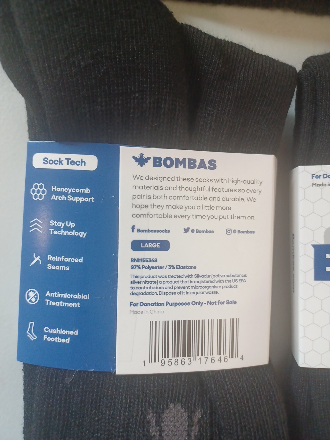 5 Pairs Bombas Men’s Black Crew Socks Size Large 9.5-13 Honeycomb Arch Support NWT