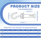 Document Concrete wall hooks secure items to concrete, bricks, walls, masonry, and anchors. Widely used indoors and outdoors for purposes such as suspending heavy objects, home decor, engineering installations, securing fences, sandbags, hammocks, swings, installing air conditioners, reinforcing anti-theft doors and windows, etc.SpecificationColor: SilverMaterial: 304 Stainless SteelThread Size: M6Thread Length: 40 mm / 1.57 inchTotal Length: 90 mm / 3.54 inchCasing Size: 40 x 9.5 mm / 1.57 x 0.37 inchOpening Size: 20 mm / 0.79 inchLoad capacity: 120 kg / 264.55 lbPacking List: 5 Pcs x Concrete Wall HooksAdvantageReliable 304 Stainless Steel - Concrete wall hook bolts crafted from 304 Stainless Steel, exhibit robust durability, making them suitable for humid environments. They feature wear resistance, corrosion resistance, and exceptional rust-prevention capabilities.Deep Thread Design - The screws come with a clear thread pattern, ensuring even force distribution during application and providing great fastening strength.Instruction1. Choose a drill bit that corresponds to the diameter of the expansion screw sleeve, securely attach it to the electric drill, and drill a hole of the appropriate size.2. Place the expansion bolt into the drilled hole, use a wrench to tighten the nut, and subsequently tighten the lifting ring.NOTE1. Drill straight down to ensure the hole is not overly large.2. Avoid using it for heavy objects or machinery that produce significant vibrations. 1set M12x55mm Hollow External Hexagon Screw Lamp Threading Through Hole Bolt USD 7.57 Round End Caps Rubber Cover 7/16" Screw Protector for Screw Bolt Pipe 50pcs USD 7.45 Round End Caps Rubber Cover 7/32" Screw Protector for Screw Bolt Pipe 100pcs USD 7.24 2Pcs M6 x 250mm 304 Stainless Steel Fully Threaded Rod for Bolt Screw USD 10.98 M6 x 200mm Fully Threaded Rod 304 Stainless Steel Right Hand Threads USD 6.45 M3x25mm Nylon Screw Nut Washer Assortment Kit Black 20 Set USD 7.08 5 Pcs M6 Concrete Wall Hook Expansion Hook Open Cup Screw Silver Concrete wall hooks secure items to concrete, bricks, walls, masonry, and anchors. Widely used indoors and outdoors for purposes such as suspending heavy objects, home decor, engineering installations, securing fences, sandbags, hammocks, swings, installing air conditioners, reinforcing anti-theft doors and windows, etc. Specification Color: Silver Material: 304 Stainless Steel Thread Size: M6 Thread Length: 40 mm / 1.57 inch Total Length: 90 mm / 3.54 inch Casing Size: 40 x 9.5 mm / 1.57 x 0.37 inch Opening Size: 20 mm / 0.79 inch Load capacity: 120 kg / 264.55 lb Packing List: 5 Pcs x Concrete Wall Hooks Advantage Reliable 304 Stainless Steel - Concrete wall hook bolts crafted from 304 Stainless Steel, exhibit robust durability, making them suitable for humid environments. They feature wear resistance, corrosion resistance, and exceptional rust-prevention capabilities. Deep Thread Design - The screws come with a clear thread pattern, ensuring even force distribution during application and providing great fastening strength. Instruction 1. Choose a drill bit that corresponds to the diameter of the expansion screw sleeve, securely attach it to the electric drill, and drill a hole of the appropriate size. 2. Place the expansion bolt into the drilled hole, use a wrench to tighten the nut, and subsequently tighten the lifting ring. NOTE 1. Drill straight down to ensure the hole is not overly large. 2. Avoid using it for heavy objects or machinery that produce significant vibrations. Hot Item 100pcs M3 6+6mm Female Male Thread Brass Hex Standoff Spacer Screws PCB Pillar USD 14.1 2Pcs M10 x 150mm Fully Threaded Rod 304 Stainless Steel Right Hand Threads USD 12.41 2Pcs M5 x 200mm Fully Threaded Rod 304 Stainless Steel Right Hand Threads USD 6.85 M6x15mm Nylon Screw Nut Washer Assortment Kit Black 20 Set USD 7.93 100pcs 2.5x12 Stainless Steel Round Head Self-Tapping Screw with Washer Fastener USD 7.71 Payment We accept eBay payment. Please do not email us to ask for other payment option. We appreciate prompt payment and look forward to your business in the future. Unpaid item will be filed without receiving payment in 7 days from listing ended. Shipping Usually we ship your order out within 24 hours in business day. For shipping and handling charges (S&H) for specific item, please refer to the item listing page for more details. Please make sure your shipping address is correct. We are not responsible for any loss in transit if a wrong address is provided. Return Policy Returns for exchange are permitted and must be initiated by the buyer within 30 days upon receipt. If you would like to return your product(s) for repair / replacement / refund, please kindly contact our customer service representatives via email for an authorized RMA number. Your returned product(s) will not be processed without a completed RMA. About Us We are continually expanding our product selection to better serve your need. We look forward to providing the best sevice to you - our dear customers, so take a look around our store and find the product that you want. You can put your trust in us! If you need any help or have any suggestions, please don't hesititate to contact us anytime , we will reply you within 24 hours and try the best to help you. Description Policy 5 Pcs M6 Concrete Wall Hook Expansion Hook Open Cup Screw Silver Concrete wall hooks secure items to concrete, bricks, walls, masonry, and anchors. Widely used indoors and outdoors for purposes such as suspending heavy objects, home decor, engineering installations, securing fences, sandbags, hammocks, swings, installing air conditioners, reinforcing anti-theft doors and windows, etc. Specification Color: Silver Material: 304 Stainless Steel Thread Size: M6 Thread Length: 40 mm / 1.57 inch Total Length: 90 mm / 3.54 inch Casing Size: 40 x 9.5 mm / 1.57 x 0.37 inch Opening Size: 20 mm / 0.79 inch Load capacity: 120 kg / 264.55 lb Packing List: 5 Pcs x Concr