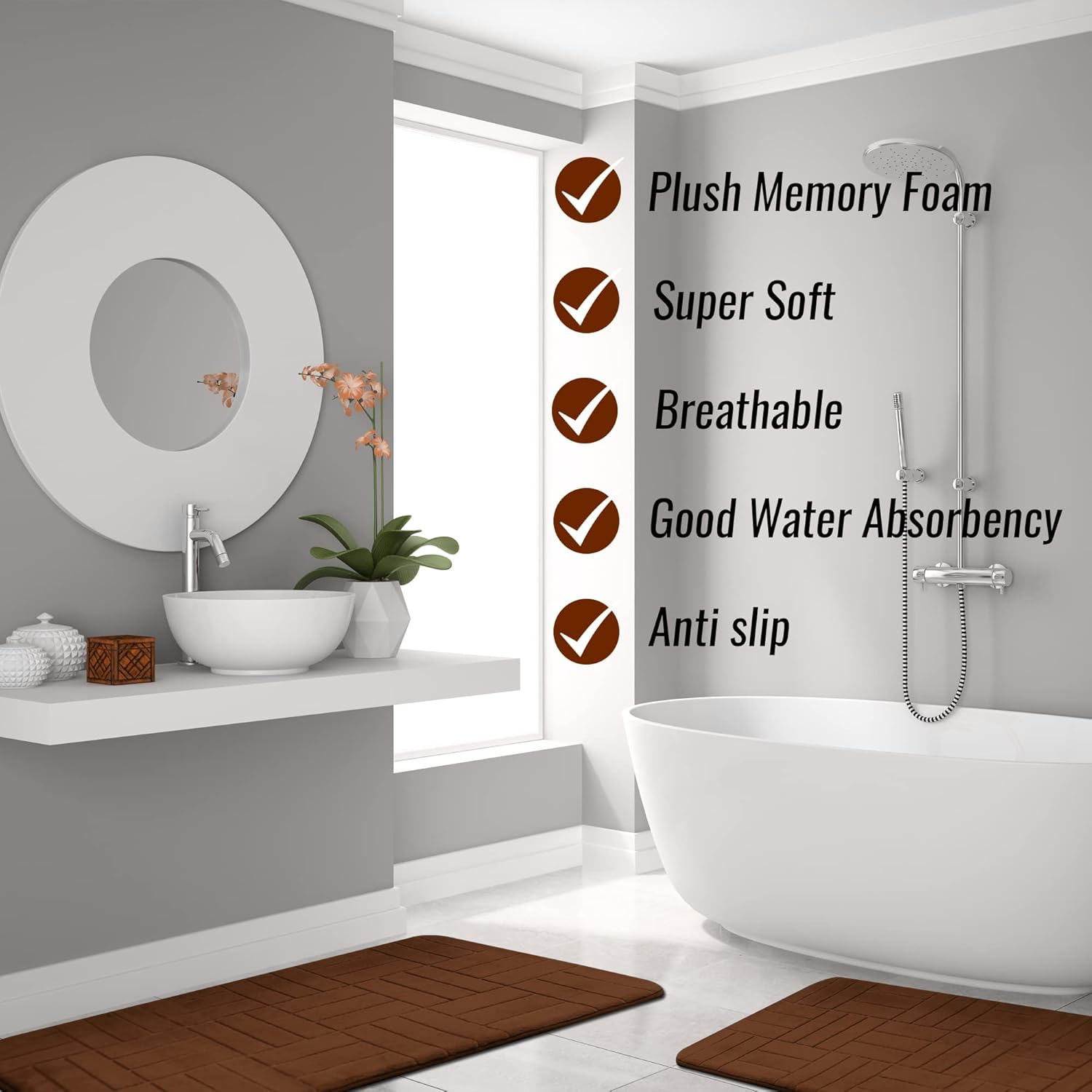 Store New Arrivals Add to Favorite View Feedback Contact 5 Piece Bathroom Rugs Set - Soft Non Slip Memory Foam Large Mats - Perfect Combination of Luxury and Comfort (Brown/Line Design, 5 Piece Set) Description Item model number BR-PARENT Style Modern Weave Type Tufted Age Range (Description) Adult Country of Origin USA Is Stain Resistant No Theme Space Number of Pieces 5 Room Type Bathroom Material Memory Foam Model Name Bathroom rug parent Rug Form Type Bath Mat Item Thickness 0.25 Inches Indoor/Outdoor Usage Indoor Water Resistance Level Water Resistant Is Autographed No Item Weight 4 Pounds Pile Height Low Pile Construction Type Handmade Occasion Housewarming Special Feature Non Slip Color Brown/ Line Design Global Trade Identification Number 00082652916694 Shape Rectangular Back Material Type Polyester Product Dimensions 47"L x 20"W Product Care Instructions Machine Wash Size 5 Piece Set SUPERIOR QUALITY AND COMFORT - The super soft and ultra-comfortable bath rugs, providing stress relief and comfort. Constructed with memory foam and polyester fiber these rugs are able to remain incredibly soft and vibrant over time. NON-SLIP AND ABOSRBENT - These upgraded luxurious memory foam rugs can soak up the water and keep your floor dry, making your feet feel the ultimate luxury experience. Created with breathable material to allow air drying. SET OF 5 INCLUDES - 1 Runner Bath Mat 47” x 20”, 1 Rug 19" x 30.5", 1 Rug 16" x 23", 1 Contour Rug 20"x20.5", 1 lid cover (16"x14") MACHINE WASHABLE - Easily clean with machine wash on cold with gentle detergent and either tumble dry on low or simply lay flat to air dry! Product Description Why Choose Effiliv Rugs? Soft and comfortable The Effiliv rugs are incredibly soft and comfortable for everyday use. High Quality Materials The Effiliv rugs are made from memory foam and water-resistant fibers. Easy To Clean These luxury rugs are easy to clean and easy to maintain Ergonomic Design It's ergonomic designed The Effiliv Bathroom Rugs Set Add to Cart Add to Cart Add to Cart Add to Cart Add to Cart Customer Reviews 4.5 out of 5 stars 2,434 4.5 out of 5 stars 2,434 4.5 out of 5 stars 2,434 4.5 out of 5 stars 2,434 4.5 out of 5 stars 2,434 4.5 out of 5 stars 2,434 4.5 out of 5 stars 2,434 Price $51.97 $ 51 . 97 $51.97 $ 51 . 97 — — $49.97 $ 49 . 97 $49.97 $ 49 . 97 $49.97 $ 49 . 97 Material Memory Foam Memory Foam Memory Foam Memory Foam Memory Foam Memory Foam Memory Foam Back Material Polyester Polyester Polyester Polyester Polyester Polyester Polyester Super Soft? ✔ ✔ ✔ ✔ ✔ ✔ ✔ Non Slip? Yes Yes Yes Yes Yes Yes Yes Strong Absorbent? ✔ ✔ ✔ ✔ ✔ ✔ ✔ ABOUT US We offer the best prices around on high quality products. Our E-store includes media such as books, movies, music and games while offering electronics, toys, sporting apparel, clothing, tools, general home, garden items and more. SHIPPING We are always working hard to ensure your package arrives as soon as possible. Please understand that some factors like weather, high postal traffic, and the performance of shipping companies are outside of our control. We offer free shipping to the lower 48 states and ship within 2 business days of payment, usually sooner. We do not accept P.O. Boxes. Please provide a physical address. For shipping outside of the continental USA, we only use eBay's Global Shipping Program.The item is shipped to KY and then sent to the rest of the world. International customers are responsible for all duties and taxes. Continue to check out in order to calculate costs for shipping the item to your country. Messages regarding eBay's Global Shipping Program MUST be directed at eBay EXCLUSIVELY. RETURNS We offer a 30-Day Return Policy on items which you are not completely satisfied with. You have the option for a full-refund or an exchange of the item. No returns are available on items shipped outside of the USA. PAYMENT We accept PayPal. CONTACT US This page content is yet to come Please ad us to your favorite seller and visit again later Thank You CUSTOMER SATISFACTION We try our very best to make sure every customer is completely satisfied. If there's a problem, message us! We're happy to help. WE ACCEPT Copyright © 2021 AutoDS. | All Rights Reserved