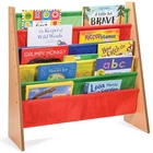 Book shelf keep budding bookworms' favorite stories easy to find with this pint-sized book rack. A sturdy wood frame and colorful pockets make it a cheery addition to little readers' rooms. For ages 3+ years. Toddler-sized book shelves, easy book access for children ages 3 and up The pockets display book covers forward for easy recognition by young children Magazine racks sturdy wood frame with 6 nylon pockets, some home assembly required Book racks flexible for books of varying size and thickness, promotes organization and reading skills