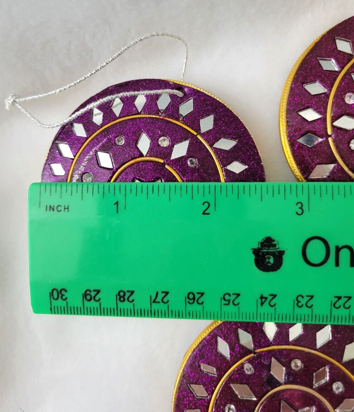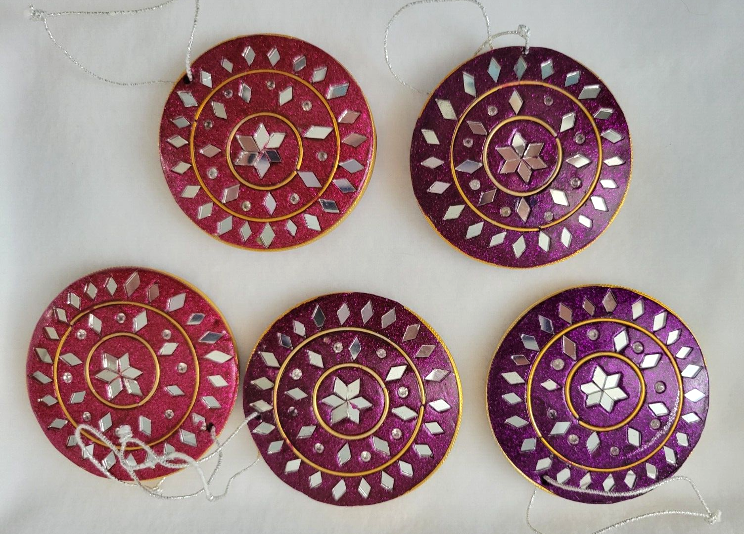 Lot 5 Clay Red / Purple Mirrored Christmas Ornaments Gold Round Circle Sparkling Nirmala Each item is carefully packaged to prevent any damage and is shipped immediately with tracking.