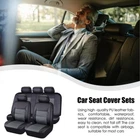 5 Seat Full Set Car Seat Covers Leather Front Rear Cushion Protection Black/Gray