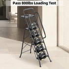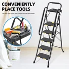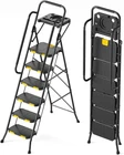 5 Step Metal Ladder with Handrails Tool Platform 800 Lbs Capacity Heavy Duty Get the job done safely and efficiently with the 5 Step Metal Ladder with Handrails Tool Platform 800 Lbs Capacity Heavy Duty . Designed with stability, safety, and convenience in mind, this high-quality ladder is perfect for both DIY enthusiasts and professionals who need to reach new heights. Key Features: 800 lbs Sturdy Step Ladder: Built with a robust high-strength steel frame, this 5-step ladder provides outstanding stability and security. With a maximum tested capacity of 800 lbs, it’s perfect for heavy-duty tasks. The ladder’s open dimensions are 21.47 inches (L) x 38.93 inches (W) x 64.14 inches (H) , and when folded, it measures 21.47 inches (L) x 8.5 inches (W) x 71.08 inches (H) . Safety Locking Mechanism: The unique safety lock design on the top pedal automatically locks the platform when you push it, ensuring your balance and safety while climbing. This feature makes it easier to reach heights you might not have attempted before. Non-Skid Wide Pedals: The top tread measures 11.3 inches x 14.1 inches , providing ample space and non-slip texture for secure footing. This design helps prevent slipping, giving you the confidence to work efficiently at higher elevations. Convenient Tool Platform: This foldable 5-step ladder comes with a practical tool tray that can hold gloves, wrenches, paint buckets, light bulbs, and other tools. With easy access to your tools, you can save time and energy by not needing to climb up and down repeatedly. 3 Comfortable Handrails: The extended handrails on both sides and upper handles are wrapped in soft foam for comfortable gripping. These handrails provide added support and balance when going up and down the ladder, enhancing your safety and comfort. Horseshoe Feet Covers: The ladder is equipped with anti-slip grips on all four feet, which add more stability and safety while protecting your floors from scratches. These floor-friendly features make working with this ladder even easier and safer. Item Specifics: Material: Metal Color: Black & Yellow Product Dimensions: 18.11 inches (W) x 58.5 inches (H) Weight: Approximately 25 lbs Special Feature: Anti-Slip Make your next project easier and safer with the 5 Step Metal Ladder with Handrails Tool Platform 800 Lbs Capacity Heavy Duty . Whether you’re painting, fixing, or organizing, this ladder is your perfect work partner. Order now and elevate your workspace! Previous page Next page 64.14 inches x 21.47 inches x 38.93 inches. Weight: 24.9 lb Features 5 step ladder Manufacturer Part Number TZ2223-5D Assembled Product Weight 24.9 lb Color Black, Yellow Material Metal, Plastic, Foam Assembled Product Dimensions (L x W x H) 21.47 x 38.93 x 64.14 Inches