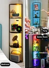 $ 55.586-Tier Corner Shelf with LED Light 67.5" Metal Wood Display Rack Organizer Black