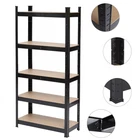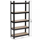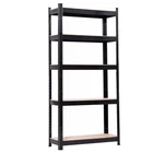 Introductions: This high quality storage shelf is constructed of metal plate. This 5-tier shelving unit can be used separately or combined with other shelves into a larger storage space to meet your various needs. Its boltless design allows it to be easily assembled and disassembled. This storage rack can be disassembled into a compact size for easy storing and transporting. It is an ideal storing and displaying solution in kitchen, garage, workshops, warehouse, and balcony. Features: 1. 5 adjustable MDF Shelf Boards 2. Shelf Super strong MDF Board 4mm thickness 3. Load up to 150kg per shelf 4. Fully Adjustable to any level 5. Shelf just snaps together (no bolts required) 6. Just use a rubber mallet (not included) Specifications: 1. Color: Black 2. Material: Steel & MDF 3. Finish: Powder Coated 4. Dimension: (27.56 x 11.81 x 59.06)" / (70 x 30 x 150)cm(L x W x H) 5. MDF Board Thickness: 4mm 6. Max. Capacity (per tier): 330.69lbs / 150kg Package Includes: 1x 5-Tier Heavy Duty Metal Garage Shelving