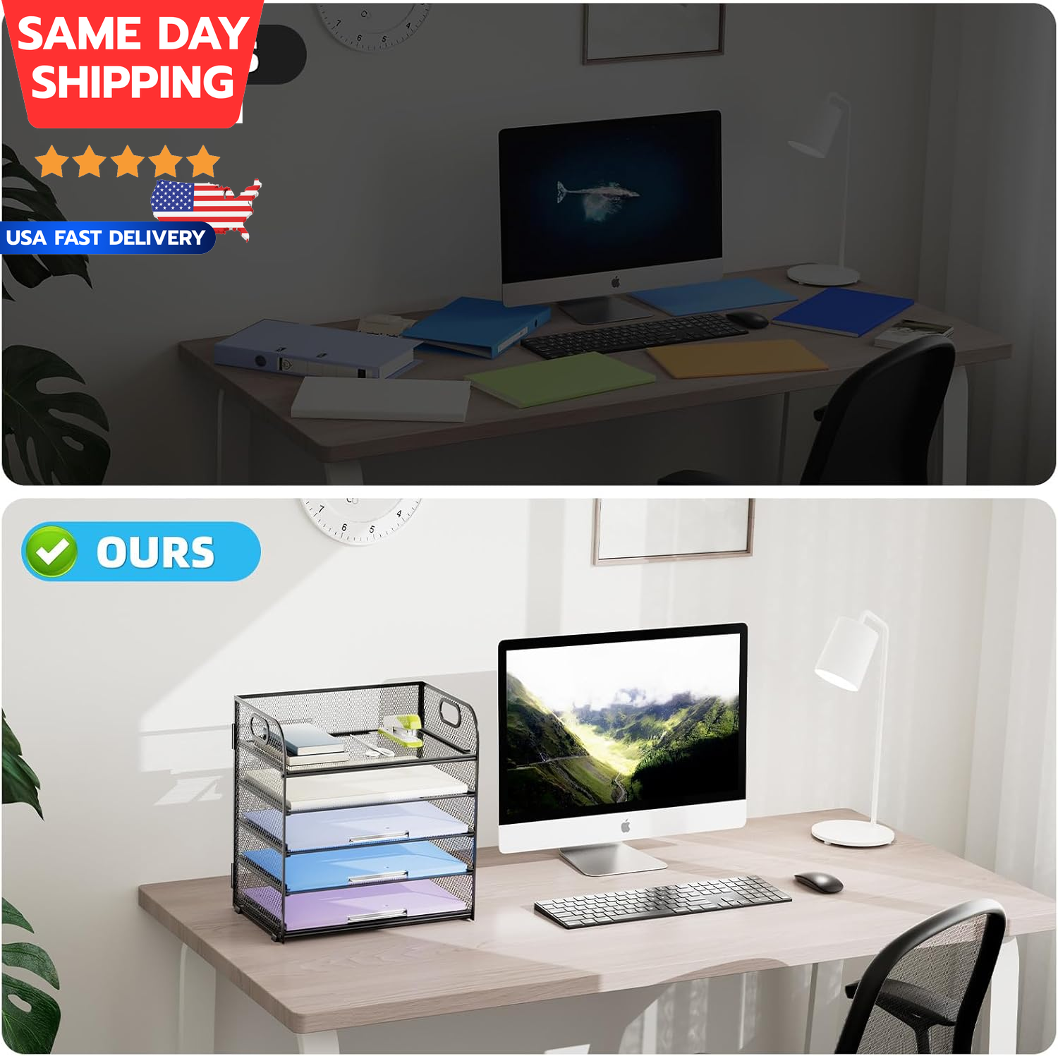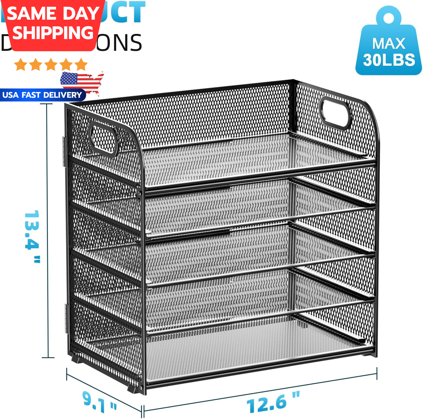 This 5-tier mesh organizer is a game-changer for my cluttered desk! The sturdy black design looks sleek, and the portable handle makes it easy to move around. I love how the spacious tiers keep my papers, folders, and office supplies neatly separated yet accessible. Perfect for home or office use—highly recommend for anyone needing instant organization!