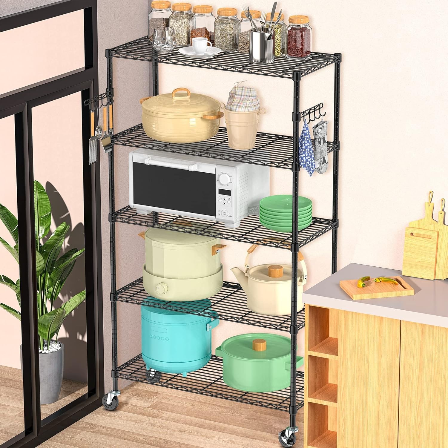 5 Tier Metal Storage Shelves on Wheels Adjustable Garage Kitchen Pantry Organizer ‹ › ‹ › ‹ › ‹ › ‹ › ‹ › ‹ › ‹ › ‹ › ‹ › 5 Tier Metal Storage Shelves on Wheels Transform your storage space with our versatile and stylish 5 Tier Metal Storage Shelves, perfect for any environment – from the kitchen and pantry to the garage and laundry room. Key Features: Large Capacity: Measuring 36L x 14W x 72H inches without wheels, our shelving unit provides an expansive organizing space for your items. The included 2 extra hangers expand its functionality. Effortless Mobility: Equipped with 4 commercial-grade wheels, this unit glides smoothly and silently. The built-in locking mechanism ensures stability when stationary, eliminating unwanted movement. Robust Construction: Crafted from durable steel wire with a sleek black finish, each shelf can support up to 300 lbs evenly distributed, ensuring a reliable storage solution. Customizable Storage: With 5 adjustable-height shelves, you can easily configure the space to accommodate items of various sizes – a truly tailored storage experience! Simple Assembly: Designed for ease of use, this wire shelving requires no additional tools for assembly, making setup a breeze. Why Choose Our Storage Shelves? Are you in search of a storage solution that combines functionality with contemporary style? Look no further! Our 5 Tier Metal Storage Shelves are not only durable and adjustable but also designed to enhance and organize any space in your home. Experience effortless organization with an elegant touch. Upgrade your storage today and make room for a clutter-free lifestyle - order now! Shipping Free & Fast Shipping - We offer free shipping to most of the USA with a normal delivery time of 3-7 days. However, due to the current situation, additional delivery time (up to 3 weeks) may be required for some items. Alternative Carriers - We may use alternative carriers (e.g. USPS, FedEx, UPS, etc.) to ensure your package arrives safely and on time. Due to the use of multiple carriers, we are unable to provide a tracking number automatically. Handling Time - Orders are processed and shipped within 1-2 business days of receiving cleared payment. Shipping Restrictions - Shipping to Alaska, Hawaii, Puerto Rico, Guam, and other US territories may incur shipping charges or delivery restrictions. Please contact us before ordering, or your order can be refunded/cancelled. State Restrictions - There may be restrictions based on your state of purchase. For example, certain items may not be shipped to California due to state regulations. Contact for Tracking Updates - If you require tracking updates or have any concerns about the delivery of your order, please feel free to contact us, and we will be happy to assist you. Return 30-Day Hassle-Free Returns - We want you to be completely satisfied with your purchase. If you are not, you can return the item within 30 days of receiving it for a full refund or exchange. Easy Return Process - To start a return, simply contact us and we will provide you with a prepaid return shipping label and detailed instructions. Restocking Fee - There are no restocking fees for returns. However, the buyer is responsible for return shipping costs if the return is not due to a seller's error. Refund Processing Time - Refunds will be processed within 5 business days of receiving the returned item in its condition. Payment We accept all major credit cards, PayPal, and Apple Pay for your convenience. Your payment information is secure and encrypted to ensure a safe and seamless transaction. Please complete your payment within 3 days of purchase to avoid any delays in shipping. Feedback Your feedback is extremely important to us. We strive to provide the best products and customer service possible. If you are satisfied with your purchase, please take a moment to leave us a positive review. If you have any concerns or issues with your order, please contact us before leaving negative feedback. We are committed to resolving any problems and ensuring your satisfaction. Contact Us If you have any questions or concerns, please feel free to out to our customer support team. You can contact us through the eBay messaging system. We are available Monday to Friday, 9:00 am to 5:00 pm EST, and we will do our best to respond to your inquiry within 24 hours. Buy it now and enjoy a pleasant shopping experience! Unit Quantity: lbs Set Includes: Assembly Tools,Shelving Unit Material: Iron,Steel,Metal Mounting: Free Standing Features: Adjustable,Durable,Locking Caster,Rust Resistant,Easy Assembly Room: Bathroom,Bedroom,Dining Room,Entryway,Home Office/Study,Kitchen,Living Room,Porch,Garage,Closet,Laundry Department: Adults Required Tools: No Tools Required Item Height: Storage Shelves with Wheels Item Length: Storage Shelves with Wheels Item Width: Storage Shelves with Wheels Number of Shelves: 5 Type: Shelving Unit Style: Contemporary/Modern Color: Black Number of Items in Set: 1 Door Mechanism: Open Face Maximum Weight Capacity: 300 lb Item Weight: 20 lb Maximum Weight per Shelf: 300 lb Shape: Rectangle Finish: Powder Coated Suitable For: Books Distance from Floor to Bottom: 4 in Wood Tone: Medium Wood Packaging: Flat Pack