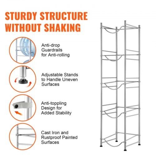 5 Tiers Water Jug Holder 5 Gallon Water Bottle Holder Single Row Water 5 Tiers Water Jug Holder, 5 Gallon Water Bottle Holder Single Row Water Bottle Rack for 5 Bottles Heavy Duty Water Jug Rack for Kitchen Office Living Room Silver Water Bottle Rack Multi-Tier Storage Easy Installation Thoughtful Details Versatile Use Variety of Sizes Primary Material: Iron Number of Rows: Single Row Capacity: 5 Bottles Number of Tiers: 5 Tiers Color: Silver Product Model: 5 Water Bottle Rack-S Product Dimensions: 13.1 × 13.0 × 53.3 in / 332 × 330 × 1355 mm Net Weight: 8.42 lbs / 3.82 kg Overall Load Capacity: 209.4 lbs / 95 kg *Photo Colors may vary on your device. With any product, the color may appear different based on device, monitor settings, configurations, browsers, the lighting/setting for the photograph, etc. Shades may slightly vary during manufacturing runs/processing. Photos are for informational purposes only and represent a basic design. Dimensions are approximated and may vary during manufacturing runs. Manufacturers may make modifications to the design of an item at any time. About Bargains Delivered Bargains Delivered gives personal attention that only a small business can offer. Wherever you prefer to shop, Bargains Delivered will be there with the widest selection possible for your convenience. See our feedback history with thousands of satisfied customers. We have been serving you since 2005, and we are committed to maintaining your trust! Returns/Refunds Our return policies are simple: most brand new items may be returned up to 30 days from receipt. See specific listing return policy to confirm if that item is marked returnable. Some items such as health and beauty are not returnable. For returnable items, customer covers shipping (initial and return) and no restocking fee applies if item is brand new. Brand new includes all packaging, tags, etc in perfect condition. Items which are not brand new may be subject to a 50% restocking fee or not accepted at all. All returns require a Return Merchandise Authorization number (RMA #).Please contact us for return RMA and return address. Please note that RMA # does not guarantee final disposition for a return and all returns are inspected before any credit would be given. Customer should use a trackable, insured return service. If item is damaged or lost in transit to us, customer would need to file a claim with their return carrier and we would not be able to process the return. Shipping fees are non-refundable, including expedited shipping, even if item is defective or arrives later than estimated. For any return requests involving variations in the color, shade, approximate dimensions, included accessories, or features listed in the description, normal return policies apply. If parts are missing or damaged, we will send replacement parts if available or it may be processed as a standard return. Shipping We ship fast, usually in 1-2 business days, with delivery expected 2-5 days later. Messages will be sent automatically with shipping updates. All items ship to the address provided in checkout. Please submit an order cancellation request if you need the item shipped to a different address. We may require Signature on any orders. Refusal of delivery, invalid address, unable to sign and receive, and any other reason beyond our cause of error will be treated as standard return, with all shipping and restocking fees deducted. Please inspect your package and merchandise as soon as possible to report any shipping damage or other concerns. Please save all packaging and materials until you are sure there is no damage and you will not be returning the item. If you need to return, we don't provide replacement packaging. For shipping damage, we can usually replace any specific part that is damaged. Let us know which parts need replacement. We do not provide any credits for work done to correct shipping damage (such as at local bike shops) or for the inconvenience of parts arriving damaged. We will work with you to correct any problems. Payment/Tax Sales Tax: Tax is charged for orders shipped to all states where such taxes are applicable. The amount of tax charged is based on current state and local tax rates. We collect Sales Tax for multiple states, and marketplaces also collect sales tax for some states. If your state requires the payment of use tax on out-of-state purchases, then that is fully the responsibility of the buyer. State and local tax rates are subject to change at any time By making a purchase from us, buyer agrees to above policies. Thank you!