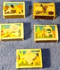 The vintage JURI Matchbox Miniatures Cow Bison Ranch Farm Wooden Toy from West Germany is a collectible toy set featuring miniature wooden figures of cows and bison. These toy animals are part of a farm or ranch playset, allowing children to create imaginative farm scenarios. Made in Germany, these vintage toys are likely to have a high level of craftsmanship and quality, making them desirable for collectors and vintage toy enthusiasts. The Matchbox brand is known for producing detailed and realistic miniature toys, making this set a charming addition to any vintage toy collection.