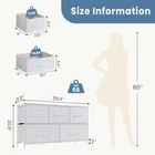 [Multipurpose Usage] This premium clothes organizer mixes classic and modern designs, allowing it to blend seamlessly with any decor style in your home, and perfectly fit as a kid's dresser, baby dresser, bedroom dresser, closet dresser, and nursery dresser. [Large Capacity]For easy storage, 2 sizes of storage space drawers are offered. These 5 foldable deep drawers are spacious enough to provide endless organizational possibilities. The wooden top of the dresser organizer is great for lamps, clocks, glasses, and other daily essentials, keeping them within your reach. [Premium Material]This chest of drawers is equipped with premium metal rails and durable storage drawers. The tall dresser is made of high-quality MDF board material (Capacity: 66lb) and is not easy to deform. The surface of the wooden dresser is smooth and easy to clean. [Sturdy and Safe Construction]The bedroom storage cabinet is equipped with a thickened and durable steel frame for long-lasting construction. It comes with triangular support bars and anti-tipping accessories to prevent accidents. [Assemble & Service]The packaging is equipped with instructions and an accessories bag, which allows only about 20 minutes to assemble your fabric dresser with detailed instructions and the installation video.