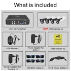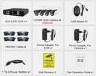 Feature:: 1. The camera supports 720P,1080P/5MP HD resolution(Optional); 2. The kit supports Motion Detection and Email Alert; 3. Support H.264 video compression technology; 4.The camera has 6pcs Array IR LEDs, Day & Night Vision, 15-30m IR Distance. 5.Used Indoor or Outdoor, IP 66 waterproof. 6. The DVR is 4CH hybrid DVR, support AHD Camera, Analog Camera, IP Camera, TVI Camera, CVI Camera; 7. The DVR support 4CH BNC Video Input,1CH VGA+1CH HDMI Output; 1CH RCA Audio input and 1CH RCA Audio Output. 8. The DVR support 1PCS 3.5" SATA Hard Disk storage, max support 8TB. 9. The DVR Support 20+languages: It has English, Chinese, Italian, Spanish, Japanese, Russian, French, German, Portuguese, Turkish, Polish,Romanian, Hungarian, Finnish, Farsi, Thai, Estonia, Vietnamese, Brazilian, Hebrew, Indonesian, Arabic, Swedish, Czech, Slovenia, Dutch... 10. The kit supports 7x24 hours loop recording, motion detection recording, and other recording modes, you can playback the recording to view; 11. Support web side, CMS, central management platform software XMEYE; 12.Supprt Cloud technology,Realize network penetration, front and rear end docking, and push alarm information to mobile phones. Package List(1): 1 * 4CH Hybrid DVR 1 * Power Supply for DVR 1 * USB Mouse 1 * Fast Operation Guide 4 * 720P/1080P/5MP Waterproof AHD Cameras (Optional) 2 * Warning Sticker(gift) ***Hard Disk is not include in the kits*** (Note: For the PAL or NTSC .we will send it according to different countries. ) Package List(2): 1 * 4CH Hybrid DVR 1 * Power Supply for DVR 1 * USB Mouse 1 * Fast Operation Guide 4 * 720P/1080P/5MP Waterproof AHD Cameras (Optional) 4 * 18M BNC Cable for Cameras 1 * DC12V Power adapter for Cameras 1 * 1 TO 4 Power Splitter for Cameras 2 * Warning Sticker(gift) ***Hard Disk is not include in the kits*** (Note: For the PAL or NTSC .we will send it according to different countries. ) Experience with 720P & 1080P & 5MP HD System Ideal for home or business -720P(1280 * 720) / 1080P(1920 * 1280) /5MP(2880*1616) offers exceptional Full HD resolution and quality enhancing efficiency and monitoring capabilities. Smart IR-CUT Night Vision The camera has a built-in mechanical IR-cut filter placed in front of the image sensor to filter out infrared light in the daytime, producing better color reproduction. At nighttime or when the built-in light sensor detects low-light conditions, the IR Cut Filter moves away from the lens to let in100% of the infrared light for maximum night vision performance. This results in the camera image changing to Black and White for better image quality. Intelligent Motion Detection & Email Alert You can enable motion detection alerts,When movement is detected in monitoring area, instant email will be sent to your mailbox and phone automatically. Get everything informed even you're away from home. VGA and HDMI Output It supports VGA/HDMI output simultaneously. You only put the device to your TV or Desktop Computer to enjoy exceptional clear video. Locate Incident Video With Smart Play It effectively econnomized your time in playing back the video; Incident video clips can be found and marked in no time with smart playback function; so you get the chance to go directly to incident video clips while skipping others. Easy access via multi-platform Support Mobile Phone iOS, Android System,Remote view of mobile phones, any time... any where... Mobile Remote access in seconds Easy setting , just 4 steps for mobile phone viewing (Android and iPhone iOS) Applied to Multiple Occasions: Install and Connect it It can be quickly and easily setup by anyone. Instantly see live video using your computer, tablet, or phone from anywhere. 4CH 1080N AHD DVR Specification for 720P and 1080P Kit Video compression: H.264 Encode capacity: 4x 1080N @25FPS, NTSC @30FPS Video input/ output: 4CH BNC/ 1CH VGA, 1CH HDMI Audio input/ output: 1CH RCA/ 1CH RCA Recording , Playback , Backup resolution: 720P/1080N USB: 2x USB 2.0 HDD: 1xSATA port (Max support up to 8TB) Language: Support 10+languages,has English, Chinese, Italian, Spanish, Japanese, Russian, French, German, Portuguese, Turkish, Thai, Estonia, Vietnamese, Brazilian, Indonesian, Czech... 4CH 5M-N AHD DVR Specification for 5MP Kit Video compression: H.264 Encode capacity: 4x 5M-N @25FPS, NTSC @30FPS Video input/ output: 4CH BNC/ 1CH VGA, 1CH HDMI Audio input/ output: 1CH RCA/ 1CH RCA Recording , Playback , Backup resolution: 5M-N/1080P USB: 2x USB 2.0 HDD: 1xSATA port (Max support up to 8TB) Language: Support 20+languages: It has English, Chinese, Italian, Spanish, Japanese, Russian, French, German, Portuguese, Turkish, Polish, Romanian, Hungarian, Finnish, Farsi, Thai, Estonia, Vietnamese, Brazilian, Hebrew, Indonesian, Arabic, Swedish, Czech, Slovenia, Dutch... Face Record/Face Detection/Face Playback Record every face that appears on the lens, without missing any details. You need use the Face Detction Function IP Camera Your Camera Must support XM Face Detection, or will not work) Only applicable to 5M-N(1080N don't support) AI Human Detection Alerts Quickly finds human targets and immediately sends App notifications to your phone so you can see what's happening anywhere. Only applicable to 5M-N(1080N don't support) 720P/1080P/5MP AHD Camera Specification Effective Pixel:1280x720,1920x1080,2880*1616 Lens: Megapixel 3.6mm Number of IR LEDs:6 pcs Array IR lEDs Night Vision:20-30m IR Distance IP66 Waterproof IP66 professional security surveillance camera for Outdoor/Indoor use. Operating Conditions: -20 ~50 , Humidity 95% or less (non-condensing) Product description and all-round display:
