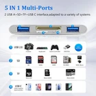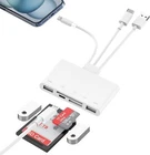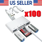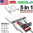 Features: Plug and Play: memory card reader has various interfaces, no WIFI, network or drivers required, super easy to use. usb / usb c(type c) / for IOS Connector/ sd card slot / micro sd card slot and for iPhone charging port for iPhone/for iPad, easily transfer photo video and file information. Charging for iPhone/for iPad: Unlike other sd card adapters, our upgraded sd card reader has a charging port for iPhone/for iPad. Charging and reading can be carried out at the same time, so you no longer have to worry about the phone running out of power during the transfer process. Fast Transfer Speed: The high-speed two-way transfer from SD card reader can save you a lot of waiting time. allowing you to easily manage data between for iPhone/for iPad/ for Android / computer and other devices. Multi-function: It can connect more USB peripherals, such as camera, TV, USB flash drives, card reader, etc. You can connect your PC keyboard or mouse to your for iPhone/for iPad/PC via the USB camera adapter to Enjoy faster and easier chatting and typing while working. Wide Compatibility: The SD/TF card reader USB adapter supports standard photo formats, including JPER and RAW, as well as SD, HD video formats, and supports all for ios devices with for iOS 9.1 and above and OTG for Android phone/computer and other devices with USB port, The micro sd card reader supports up to 1TB memory cards and 512GB USB2.0 flash drives, the USB3.0 flash drives cannot exceed 128GB. Package include: 1-100* 5-in-1 Memory Card Reader Buyer Note: If you are satisfied with our service, we appreciate you leaving us a positive feedback and 5 star rating review! Your opinion is important to the success of our business. If you are not satisfied with the product or have not received the product for more than 35 days, please contact us to resolve, we will do our best to solve. We are sure to come up with a satisfactory solution. Please contact us first before leaving cold feedback or good feedback of 1-3 stars and opening the case. We'll do our best to solve your problem. Because we believe that everything can be solved through communication. Thank you very much!
