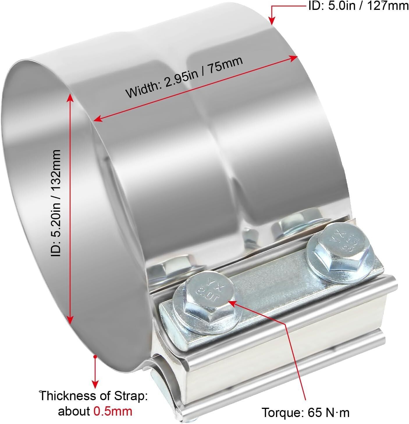 5" inch 2pack Stainless Steel 304 Lap Joint Clamp Heavy Duty Exhaust Band Clamp 🔧 2PCS 5" Heavy-Duty Lap Joint Exhaust Band Clamps – 304 Stainless Steel 🔧 【No-Weld Design | Universal Fit (5" OD × 5" OD Pipes) | 360° Leak-Proof Seal】For Exhaust Pipe Connections | Reusable | Easy Installation 1. Core Features 🔹 Exact Size for 5" Exhaust Pipes Designed exclusively to join two 5" outer diameter (OD) exhaust pipes, ensuring a tight, compatible fit: Pipe Size Key Fit Notes 5" OD × 5" OD Ideal for connecting exhaust components like mufflers, cat-back systems, or exhaust tips with 5" OD ends – no vehicle-specific restrictions, but measure pipes first to confirm size. Critical Fit Check : Confirm both pipes have a 5" outer diameter (OD) – incompatible with non-5" sizes (e.g., 4", 6") or inner diameter (ID) pipes, as this will cause poor sealing. 🔧 Durable 304 Stainless Steel Build Heavy-Duty 304 Stainless Steel : Resists rust, corrosion, and high exhaust temperatures (handles under-car heat and moisture without warping or deteriorating) – built for long-term use. 360° Equal Pressure Distribution : Distributes clamping force evenly around the pipe joint, preventing leaks and pipe distortion. This ensures a tight seal that maintains exhaust system performance (avoids power loss from leaks). No-Weld Convenience : Eliminates the need for welding equipment; simply tighten the bolts to secure the joint – saves time and avoids permanent modifications to pipes. 🌟 Easy Installation & Reusability Simple Operation : No specialized tools required. Just: Place the clamp over the 5" OD × 5" OD pipe joint. Tighten the bolts to secure the connection (alternate sides for even pressure). Loosen bolts to disassemble or reuse the clamp later. Reusable Design : Easy to remove and reattach if you need to replace exhaust components (e.g., swap mufflers, upgrade parts) – reduces waste and extra costs. 2. Technical Specifications Parameter Category Detailed Specifications Condition 100% Brand New Product Type 5" Heavy-Duty Lap Joint Exhaust Band Clamps (2-piece set) Material 304 Stainless Steel (note: specification mentions "Aluminium Alloy" – corrected to match product description’s 304 Stainless Steel) Color Silver (as shown in product images) Size 5" (fits 5" OD × 5" OD exhaust pipes) Design Feature No-weld; 360° equal force distribution; reusable; bolt-tightened Compatibility Universal – 5" OD exhaust pipes (mufflers, cat-back systems, exhaust tips) Package Contents 2× 5" Exhaust Band Clamps 3. Package Included 2 × 5" Heavy-Duty Lap Joint Exhaust Band Clamps 4. Usage & After-Sales Tips Installation Guidelines Prep : Clean the ends of both 5" OD pipes to remove dirt, rust, or old gaskets – a clean surface ensures a better, leak-free seal. Align Pipes : Slide the two 5" OD pipes together (leave a small overlap if needed; use an exhaust gasket between pipes for extra sealing, if desired). Position Clamp : Place the clamp over the overlapping joint, ensuring it covers the seam evenly. Tighten Bolts : Hand-tighten the clamp’s bolts first to keep it aligned, then use a wrench to torque them evenly (alternate bolts to avoid uneven pressure). Test for Leaks : Start the engine and check around the joint for exhaust leaks (listen for hissing or feel for airflow) – retighten bolts if needed. After-Sales Support Fitment Issues : If the clamp doesn’t fit, recheck pipe size (must be 5" OD) – contact the seller for verification. Defects : If clamps are bent, bolts are missing, or metal is damaged, reach out immediately for a replacement. Feedback First : Contact the seller before neutral/negative feedback – all issues (shipping, quality, fit) will be resolved promptly. This 2-piece set is the tough, hassle-free solution for 5" exhaust pipe connections! It’s built to last, easy to use, and keeps exhaust systems leak-free. 🚗🔧