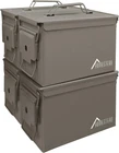 50 Cal Metal Ammo Can – 4-Pack Steel Military Storage Box, Airtight & Waterproof AIR and WATERTIGHT - Each 50 cal metal ammo can is tested for airtight & waterproof, making sure your goods safe and dry inside Heavy-Duty Steel Ammo Can - Made with high-quality metals, these metal ammo boxes are perfect for long-term storage. Built to last and endurance, the advanced construction of these steel containers means that your belongings are kept clean Space-Saving - These ammunition boxes are designed with stackable storage in mind, great for small and compact spaces like garage and more Encased Well - These ammo storage box are lockable, which will give you peace of mind, knowing that your goods are well kept inside Desiccant Pack Included - When you seal the ammo can shut, moist air trapped inside the can harm your belongings. A desiccant pack will absorb all that moisture and keep your things safe