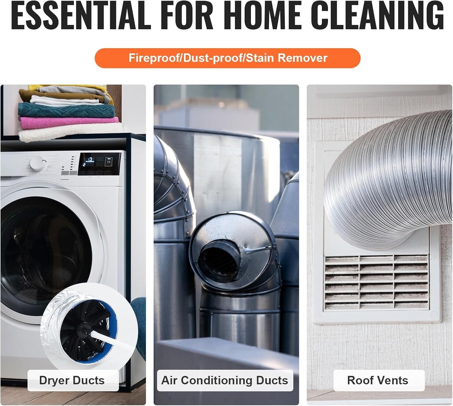 Efficient Cleaning: This pipe cleaning brush is designed for effective cleaning, using high-density bristles to thoroughly clean pipe walls. The closely spaced bristles can penetrate deep, removing debris and blockages, ensuring a clear flow. The high-density bristle design also reduces cleaning time and improves efficiency. Easy Assembly: This pipe cleaning brush uses a threaded connection, making assembly a breeze. Simply align the joints of the two poles and rotate clockwise to secure them. It can be used as a standalone tool or attached to a drill for added convenience. When using with a drill, simply use the chuck connector to attach the brush head to the pole. High Durability with 90° Bendability: Both the pole and brush head of this pipe cleaning brush are made of high-strength nylon, providing excellent durability and wear resistance. They are not prone to wear and can withstand bending up to 90 degrees, making it easy to clean pipe sections with multiple bends, ensuring 360-degree comprehensive cleaning. Extendable up to 50 Feet: This pipe cleaning brush can quickly extend up to 50 feet, allowing you to easily reach distant or deep sections of pipes, such as those running through roofs, basements, and attic spaces. By expanding the cleaning range, it greatly enhances cleaning efficiency. Wide Application: With overall dimensions of 17.32''L x 6.02"W x 2.76"H, this pipe cleaning brush is suitable for various scenarios, including dryer vent outlets, air conditioning ducts, chimneys, roof vents, and more. Regularly cleaning dryer vent outlets, air conditioning ducts, chimneys, and roof vents can help prevent home fire hazards and protect the safety of you and your family. Quickly Removes Pipe Debris, Leaving No Dead Zones Our VEVOR vent cleaning kit is durable, flexible, and easy to use. Regular cleaning of chimneys, pipes, and dryer vents helps safeguard home fires and keeps your family secure. key Features Reinforced Pipe Cleaning Brush 50 ft length for versatile home pipe cleaning, with high-density bristles for thorough debris removal. Easy Extension Easy to connect and disconnect with a threaded design. Align and twist clockwise for hassle-free operation. Nylon Flexibility Strong nylon construction, bends at 90° without deformation, ensuring long-lasting use. Its lightweight nature makes it easy to carry and handle. Effortless Deep Cleaning Brush poles are connectable, reaching challenging areas, increasing cleaning efficiency, completing more cleaning tasks in less time. Preventing Home Fire Hazards Preventing home fires by clearing vents: Regular chimney, pipe, and dryer vent cleaning protect your family's safety. Comprehensive Accessories Comes with a complete set of high-quality, durable accessories, each designed for long-lasting use. Rich kit makes your work more convenient. Specifications Item Model Number: DB37 Single Rod Length After Installation: 16.14 in / 410 mm Connection Method: Threaded Connection Main Materials: Nylon Rod; PP Brush Head; Alloy Steel Connectors Item Weight: 3.73 lbs / 1.69 kg Item Dimensions: 17.32 x 6.02 x 2.76 in / 440 x 153 x 70 mm Package Content 37 x Rods 1 x Brush Head 1 x Clamp Connector 1 x Handheld Operating Handle 1 x Storage Bag