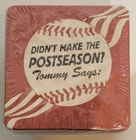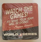 50 Fox World Series Cardboard Coasters NEW Tommy Lasorda Baseball MLB. There are some tears in the plastic (see pics). Coasters measure approximately 4 1/4" x 4 1/4". Double sided. Pack contains 50 coasters. Please see all photos for further condition details as they are also part of the description. Sold as is.