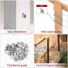 IMPORTANT to know before purchases: Angle beveled washer CR25 is ONLY compatible with 1/8" cable railing thread studs (CR23 CR24 CR39 CR40) and 3/16" cable railing kit CR45. Please note that ONLY thread studs require angled washers while the lag screw doesn’t. For other models and compatibility, please check picture 2 to find the matched washers and cable railing kits you need For 25-35 degree stairs: This T316 stainless steel angled washer is specially designed to act as a filler between the cable railing kit and the end post on 25 30 35 degrees staircase. This item is suitable for 1/8" 5/32" 3/16" cable railing kit with an outside diameter of less than 1/4". The package includes: 50 packs of angle beveled washers Easy Installation and marine grade: This angle beveled washer is perfect for DIY a clean and neat cable railing project. It is easy to install, especially for beginners. This angled washer is made of T316 marine grade stainless steel, which has excellent durability and strong resistance to rust and corrosion, and extreme weather Advice for constructing a system: To help you build a cost-effective cable railing system more efficiently, we recommend the following product combinations from , including cable railing kit CR23, wire rope WR02, protector sleeve CR72 CR79 CR91, Angled washer CR25, cable cutter and hydraulic crimper CK12, posts PF01-LB4S PF02-LH4S, handrails HT10 SL4, handrail connectors HA01 HA02 HA23 Why Choose Us: has helped millions of families with their cable railing projects during the past years. We believe that home renovation should be easy and affordable. So we work with every effort to provide quality products and professional service, to make a reliable brand