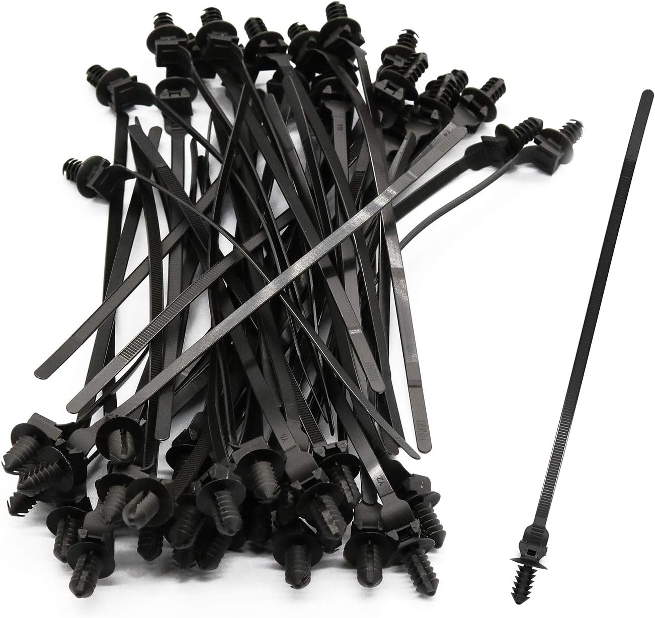 MATERIAL: Made of industrial strength 6/6 nylon material, which yields higher break points, even at colder temperatures. WORKING TEMPRATURE: -40 ~ 266°F (-40 ~ +130°C). MAXIUM LOAD: 50 lbs tensile strength. APPLICATION: Widely used in household, construction industry, electronic industry, auto industry, cable and wire assembly, packaging and shipping, outdoor activities PACKAGE INCLUDE: 50 Pack Cable Zip Ties. 50 Pack Cable Zip Ties, 8inch Nylon Push Mount Self Locking Cable Ties for Indoor Wire Tying-Black Specification MATERIAL: Made of industrial strength 6/6 nylon material, which yields higher break points, even at colder temperatures. WORKING TEMPRATURE: -40 ~ 266°F (-40 ~ +130°C). MAXIUM LOAD: 50 lbs tensile strength. Application Widely used in household, construction industry, electronic industry, auto industry, cable and wire assembly, packaging and shipping, outdoor activities. Package Include 50 Pack Cable Zip Ties. AFTER SALES SERVICE If you have anything concerned with the Cable Zip Ties after use, please first to choose contact us and we will take care of it for you. here is how Find your order in your amazon account, click the " contact seller" button beside the order ID.