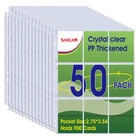 DOUBLE-SIDED DISPLAY: Each page protector has 9 pockets, double sided display can display 18 pieces,50 pages, you can put two cards in one sleeve, can display 900 long cards, suitable for card stock for 2/3/4 binder, organize and properly protect your card. THICKENED 9 POCKET CARD SLEEVE: Our trading card sleeve pages is made of transparent high-quality plastic, acid-free, non-toxic, PVC-free, high transparency, can be used for a long time without bending. Thickness 0.06MM. FITS STANDARD SIZES: Page Size: 9" x 11.2". Pocket Size: 2.75 x 3.55 inches.Great for standard size cards, Pokemon cards, coupons, game cards, business cards/trading cards/baseball/soccer cards. TOP LOADING DESIGN : Convenient and Fast - Very easy to reach,Cards will not fall as long as you keep the card protector flat or upright, perfect for card storage and display. QUALITY SERVICE: We provide 120 days after-sales service. Any questions, please feel free to contact us. Card sleeves are also ideal gifts for your child's monster game cards, gift cards, game stamps, and more. Take the card holder binder home with you.