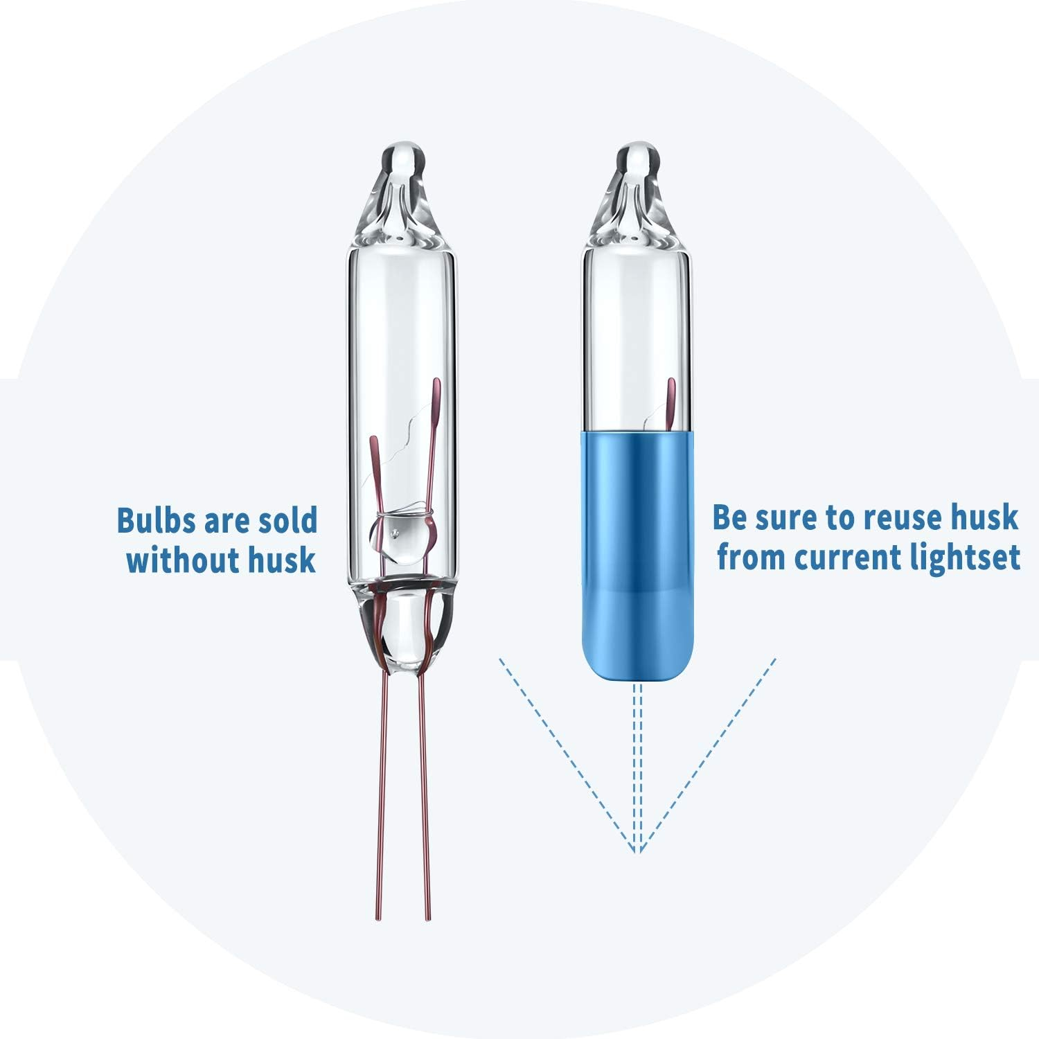 Bulb specifications: 3.5V, 125 mA, 0.43 watt; Before purchasing, confirm voltage and wattage by referring the white tag next to the male plug Quantity: the package includes 50 counts clear Christmas lights, enough for you to replace other mini bulbs Feature: these mini Christmas light bulbs are designed with pinched base, to fit in most types of string lights DIY Decor: these Christmas light sets of lights can be connected together, use them to decor your Xmas tree or any other places as you like, creating a shiny glitter warm sweet atmosphere for your family and friends Apply to: 3.5V bulbs are typically applied in 35 and 70 light strands, these bright and adorable LED fairy lights can be safely applied for indoor and outdoor usage; Suitable to decorate your pergola, hedge, Christmas tree, etc. Product description