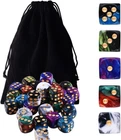 Package includes 50 pieces 6 sided dice, 5 two tone colors, 10 pieces for each color Two tone dice colors: Black& White, Blue& Purple, Black& Blue, Black& Green, Red& Green; pip color: gold Size: standard 16mm (5/8 inches) game dice, round corner, made from Eco-Friendly acrylic material Durable dice set for playing games, like Tenzi, Liar's Dice, Yahtzee, Farkle, Bunco, Casino and Teach Math, come with a velvet drawstring dice bag, free and portable Warm note: this item is not intended for use by children 12 and under. Product Description
