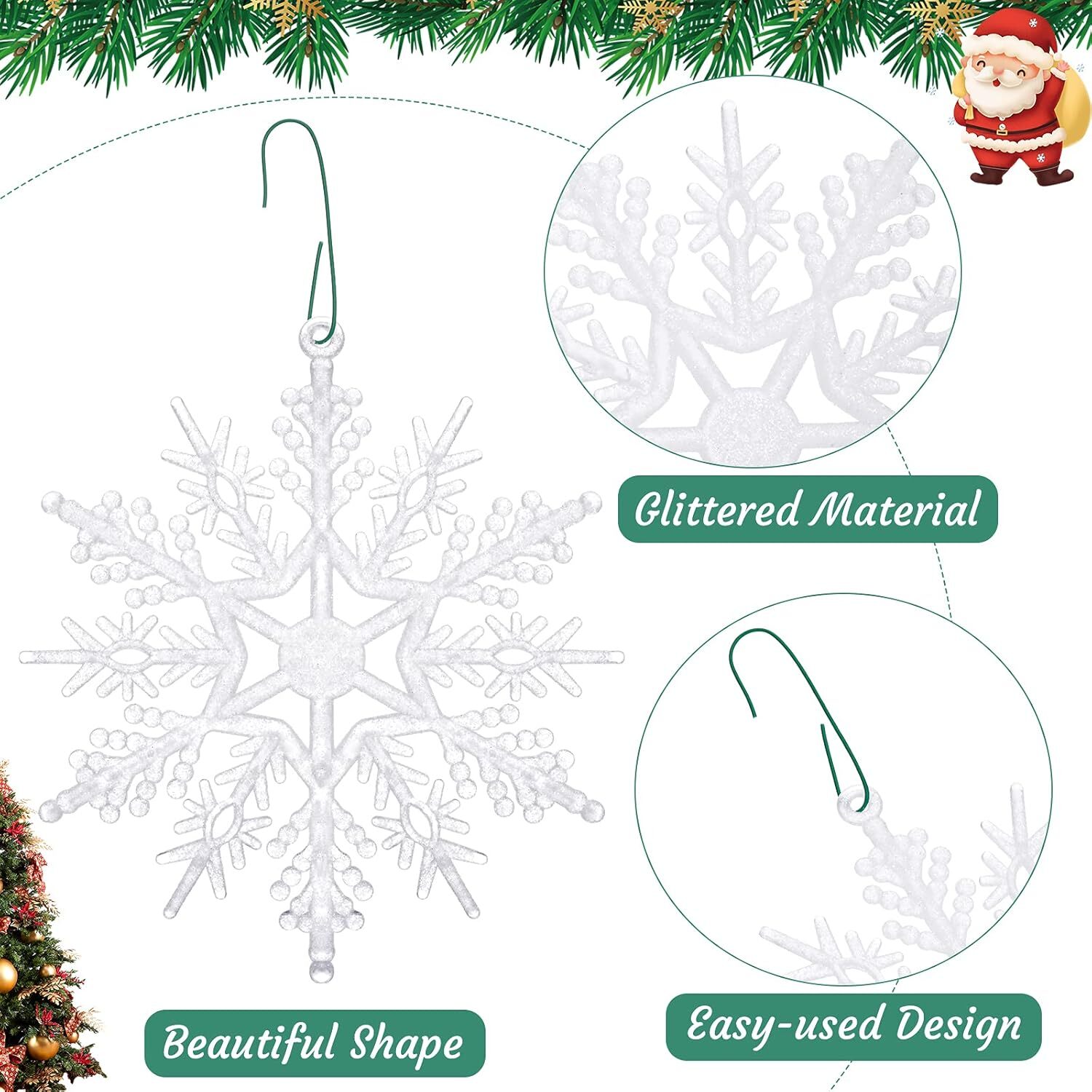 4 inch/10 cm PP Plastic Christmas Snowflake Ornaments Core Parameters Material: PP plastic Size: 4 inch/10 cm in diameter Color: Glitter (styles may vary) Technical Specifications • 50 pieces Christmas glitter snowflakes (2 styles, 25 pieces each) • Includes 50 pieces hooks (golden/silver ropes may replace small green hooks) • Lightweight, durable, and fade-resistant • Suitable for indoor/outdoor decoration (Christmas tree, house, office, etc.) • Can be gifted or shared for festive occasions Package Information Package Dimensions: Not specified