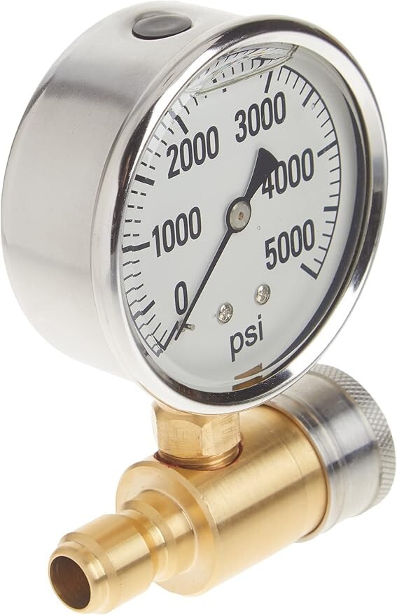 Easy to read and minimizes vibrations for accurate readings Reads up to 5,000 psi Designed to fit most pressure washer brands and models Features 3/8" quick connect plug and couplers