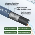 5000PSI Pressure Washer Gun and Hose Kit, 25FT Kink Resistant Steel Braided Power Washer Hose with 3/8" Swivel Quick Connector and M22 14mm Adapters Replacement/30" Extension Washer Wand 【Commercial-grade High Pressure Washer Gun Kit】: 5000 PSI high-pressure washer gun kit comes with power washer hose made from high-quality synthetic rubber and tensile braided steel. Durable and suitable for various cleaning applications, it meets the demands of outdoor cleaning and commercial washing tasks. 【Flexible Pressure Washer Rotary Gun】: The 360° rotating 3/8" quick connector inlet allows the pressure washer hose to rotate under pressure, preventing hose kinks and ensuring the expected water flow rate. This design offers great flexibility and maneuverability. The lightweight trigger and safety lock design allow you to operate the pressure washer handle without the need to hold it for extended periods. 【4800PSI Pressure Washer Hose 25FT】: 3/8" power washer hose is made of high-quality synthetic rubber & tensile steel braid, MAX working pressure can reach 4800 PSI with 16000 PSI burst pressure, Withstands high temperatures up to 120℃ /248°F. designed for a commercial and industrial pressure washer for homework and business. 【Swivel Quick Connect Kink Resistant】: 4800 PSI high pressure washer hose is equipped with a swivel 3/8" quick connect, which will help you relax more, no hose kinks, and can be used at any angle. It is also equipped with M22 14MM adapters, which can handle the cleaning work easier and faster, better support your home washing car, motorcycle, floor, window, driveway, roof, siding. 【Adjustable Length Pressure Gun】: Replacement pressure washer gun has four lengths to use. Four Length: 40 inch, 26 inch, 24 inch, 10 inch. Pressure washer wands are compatible with almost gasoline powered and electric powered pressure washers.