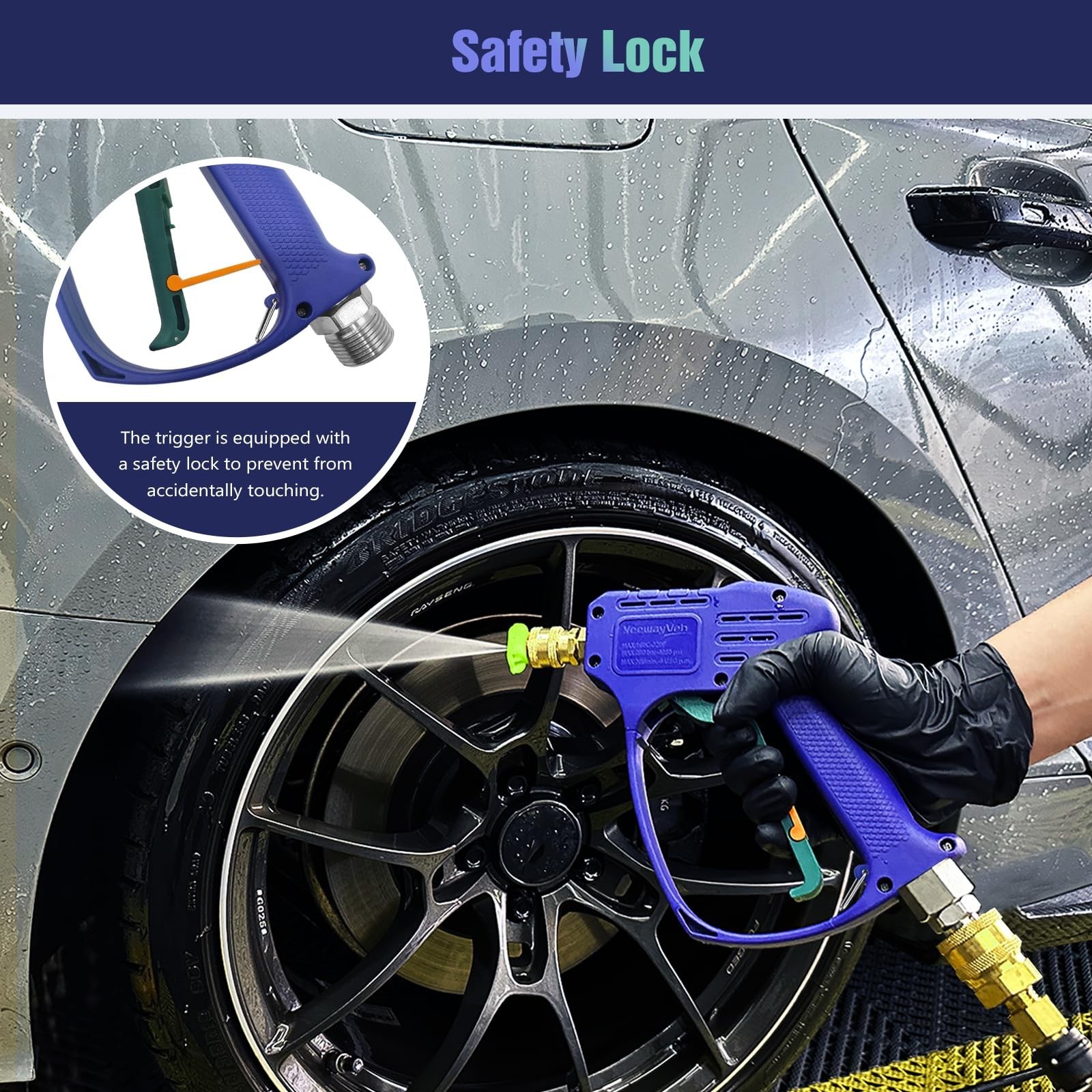 Pressure Washer Gun and Foam Cannon Kit, 5000PSI Short Power Washer Gun with M22-14 Connector, 1/4 Inch Quick Foam Cannon Soap Sprayer with 2 Nozzles for Car Wash, Blue Product Details Color: Blue Style: Foam Gun Brand: YeewayVeh MPN: YW-P155-V2 UPC: 850065957500 EAN: 0850065957500 Brand: YeewayVeh Item dimensions L x W x H: 6.5 x 6.5 x 8.86 inches Exterior Finish: Stainless Steel Inlet Connection Type: Socket Weld Maximum Operating Pressure: 5000 Pound per Square Inch Number of Ports: 2 Manufacturer: YeewayVeh UPC Brand: YeewayVeh Item dimensions L x W x H: 6.5 x 6.5 x 8.86 inches Exterior Finish: Stainless Steel Inlet Connection Type: Socket Weld Maximum Operating Pressure: 5000 Pound per Square Inch Number of Ports: 2 Manufacturer: YeewayVeh UPC: 850065957500 Product Dimensions: 6.5 x 6.5 x 8.86 inches Item Weight: 2.77 pounds VEHICLE DETAILING, FULLY SOAKED CAR: Upgrade pressure washer foam cannon has wide spray range and thick foam can quickly covered vehicle. multipurpose soap cannon can be used for washing Car RV Trucks Vans Motorcycles Machinery Campers and House Siding, soap foam lifts the dirt for a quick wash. car wash soap makes cleaning much easier and clean up is a simple rinse. QUICK WASH, PLUG-AND-PLAY: Power washer foam cannon with 1/4 Inch quick connect can quickly plugged into pressure washer gun, when unscrew the 1/4 connector, foam blaster can be used to M22 connector pressure washer. car foam sprayer original orifice nozzle 1.1mm suitable for below 2600W pressure washer. If your pressure is over 2600 PSI, please use the additional nozzle 1.25mm. POWERFUL & COMFORT Pressure washer short gun with 45 degree angle ergonomic design, pressure washer handle is grippy, even when wet. car wash gun is made of durability brass internals, ceramic core is not easy to heat, premium ABS is solid and drop-proof. SAFETY LOCKING DESIGN High pressure water gun has two safety features. The trigger is spring loaded and cannot be locked in an on position. turning loose it will return to off automatically. pressure washer foam gun trigger is equipped with a fold safety lock to prevent from accidentally touching. 2 NOZZLES FOR VERSATILE Pressure washer swivel gun with 2 nozzles (25,40). The brass spring-loaded quick connect allows quick change of universal 1/4" quick plugs nozzle and foam cannon. short pressure washer wand specifically for truck wheel wells and close quarter cleaning. foam blaster makes its perfect for detailing or car washing.