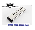 1911 Magazine, Elite Tactical, Compact, 9 Round, Standard Base Pad 500-9C9 NEW! For: 9mm Magazine Type: Single Stack For the Following Handgun Types: 1911 Compact, 1911 Officer, 1911 Commander Compact These are the finest magazines made for the 9mm 1911 platform and have been rigorously tested by our cadre of professional shooters. Bill Wilson himself has logged over 10,000 rounds of various factory and reloaded 9mm ammunition to develop these magazines which are suitable for competition or tactical use. The Wilson Combat Elite Tactical magazine started with a blank sheet of paper and 30+ years of 1911 and 1911 magazine experience. It has set a new standard in 1911 magazines while redefining state-of-the-art. We've blended the latest improvements in manufacturing and materials technology with our own real-world shooting experience to provide quality, quality, and more quality. From material selection to manufacturing process to final testing - this magazine is built like your life, and ours, depended on it, as someday it may. No compromises, just stone-cold reliability you can depend on. The ETM is primarily a combat magazine, but if you're a competition shooter, you just may gain that critical advantage that will move you past the competition. The real world for a combat pistol isn't always in a dry, protected environment. So we built the ETM to be impervious to the elements. Every component is manufactured from either a high-grade stainless steel or super tough nylon. We worried about grime and corrosion when we designed the ETM, so you will never have to. Caliber: 9mm Capacity: 9 rounds 1911 Size: Compact Increased reliability in all 1911 pistols Aircraft grade certified stainless steel tube resists corrosion Strongest tube developed preventing cracked feed lips and tube spreading .025" tube walls Refined radius for each bend in the tube to take advantage of the strength in the stainless steel Proprietary custom designed welding process Multi-step tumbling and finishing process provides smooth follower operation and insertion into the weapon Observation slots moved to the rear of the tube exactly where they need to be to maintain the structural integrity required Innovative follower design with extended skirt ensures stability in operation and minimizes creep from the tube when your magazine is empty Steel follower for flawless slide lock-even with marginal pistols The ETM seats and locks in the weapon with the slide forward NOTE: Some Kimber 1911 handguns have barrel feed ramps that are left undressed at the factory and will interfere with the ramped front of this magazine. The barrel can be easily modified by a gunsmith to provide the proper clearance required. 1911 Fit Guide: Compact Magazines / Grips: "Compact" denotes a smaller frame, such as most Officer's length 4.0 inch 1911 pistols. Compact grips have a measurement of 2.6875" from center to center between the grip screws. These pistols will use compact magazines and compact grips. 5 STAR REVIEWS: "I purchased 3 of these mags and went to the range today to see how they would run in my Colt Combat Elite Defender, 3 inch barrel. I ran one hundred and fifty rounds through them, 100 factory FMJ and 50 JHP reloads that ran 100%…. Not so much as one hiccup, they all feed flawlessly. I only wished I took more ammo. Thank you Wilson Combat for making QUALITY PRODUCTS MADE IN THE USA." "Got this for my Kimber Ultra Carry II, and its a great fit with adding an extra round." "I really like these new magazines and the metal follower. I also like the 9 round capacity and the ETM base pad. These work great in my CQB compact with speed chute/magwell. I will be buying more of these. You can never have too many magazines. Highly recommend to anyone." ~~~~~~~~~~~~~~~~~~~~ ALL MANUFACTURERS WARRANTIES WILL APPLY ! All of our products are BRAND NEW in the box; and contain all of the parts, materials and documentation. You can expect and will receive prompt delivery of your item. We will ship your order within ONE DAY! We are unable to accept returns on used, fitted, or altered parts. Returns must be in new, unused condition and in their original packaging.