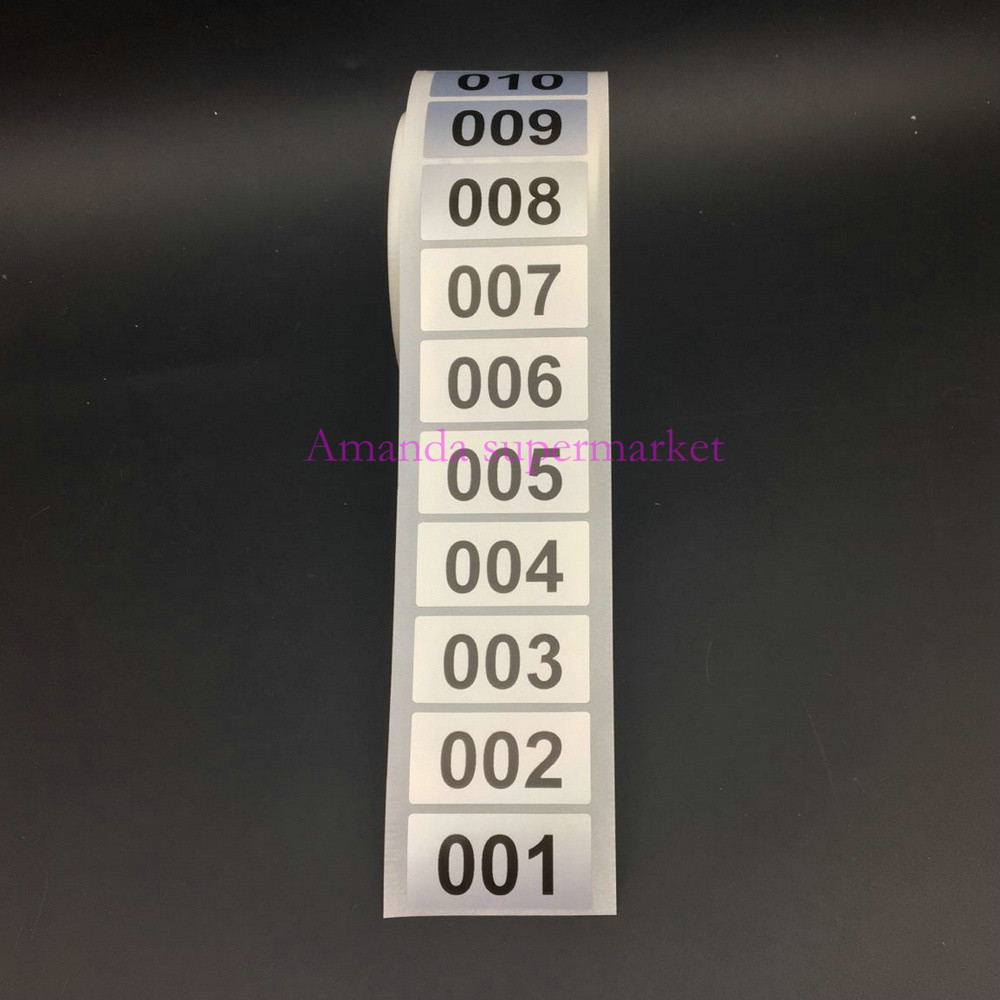 Item: Consecutive Number Label 001 to 500 Size : 40mm x 20mm (1.57" x 0.78" ) Color: silver sticker with black letters, see the photo Quantity: 500pcs in roll If you need other sizes and different contents, please contact us ( will be different price )
