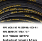 High Quality Pressure Washer Hose: Rubber construction throughout, with steel-wire braid., more durable and support high working pressure. Designed for power cleaning equipment, it can also be used for electric pressure cleaning equipment. Inner tubes are reinforced with synthetic rubber. 1 x 50 FT Pressure Washer Hose. Pressure washer hose 50 ft fits most brand power washer. Max working pressure is 4000 PSI. Burst Pressure is up to 16000 PSI. Max Temperature is 176°F. Flow rate is from 2.5 GPM to 5 GPM. 3/8 Quick Connect: Power washer hose extension fits most pressure washer models. Equipped with 3/8" quick connect female socket and 3/8" Stainless steel plug. Can be securely attached to yours. Widely Use: The great replacement and extension pressure washer hose will provide longer service life and safer cleaning of cars, motorcycles, floors, Windows, driveways, roofs, swimming pools, siding, and more for your home and business use. NOTE: IT IS PRESSURE WASHER HOSE, NOT GARDEN HOSE , ONLY SUITABLE FOR PRESSURE WASHER Material Rubber Color Black Product Dimensions 3"L x 4"W Inside Diameter 0.38 Inches Item Weight 5.46 Kilograms Maximum Pressure 16000 Pound per Square Inch Outside Diameter 0.38 Inches Item Length 50 Feet
