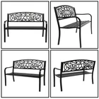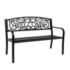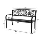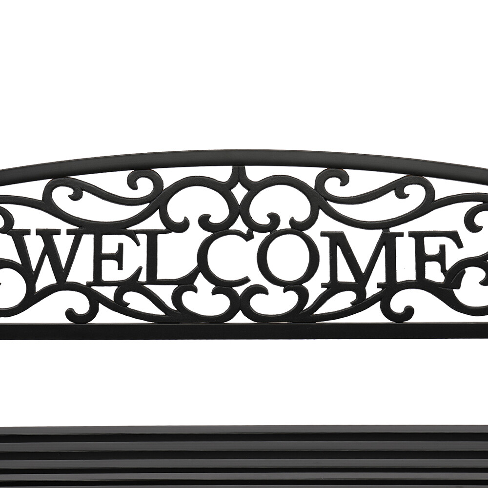 Introductions: Here is our 50" Outdoor Welcome Backrest Cast Iron Bench. Lounge comfortably or read a good book on this beautifully designed bench. It will fit perfectly on your backyard, porch, and, or near your entrance and driveway. Antique style adds a of elegance to any outdoor area. Curved armrests with a sloped slatted seat offer optimal comfort. Powder-coat iron construction provides years of durability as well as easy maintenance. What are you still hesitating about? Order now! Features: 1. Powder-coat iron construction for years of durability 2. Curved armrests with a sloped slatted seat offer optimal comfort 3. All finished edges to ensure safety, no raw cuts or drips to catch on clothing 4. Fit perfectly with any outdoor decor 5. Easy to assemble, easy to clean with a wet or dry cloth Specifications: 1. Material: Iron & PVC 2. Color: Black 3. Load Bearing: 750lbs / 337.5kg 4. Design: Backrest Pattern "Welcome" 5. Dimensions: (50 x 24.02 x 33.07)" / (127 x 61 x 84)cm(L x W x H) 6. Weight: 29.54lbs / 13.4kg Package Includes: 1 x 50" Outdoor Bench(PVC Backrest Mesh)