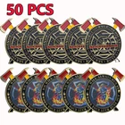 Features: Brand new and high quality. High precision manufacturing and top quality. Each coin is 1.57 inches (40mm) and 0.3 centimeters thick, comes in a fit to coin packaging for long-term protection. Specification: Material:Metal Diameter: 65x57mm Thickness: 3mm Color: as show as picture Note: May be damaged during transportation, be careful before placing the order If you mind it, please understand. Please allow 1-3cm (0.4-1.18") difference due to manual measurement and slight color variation for different display setting. Package Includes: 50 x Coin