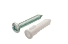 Everbilt #8-10 x 1 in. Plastic Pan-Head Combo-Drive Anchors with Screws (50-Pack) The Plastic Pan-Head Combo-Drive Anchors with Screws from Everbilt are the perfect addition to any toolbox. They feature a versatile design for light duty projects and applications. The ribs prevent turning and expand as the screw is tightened. The anchor then splits ensuring expansion on the two opposing sides. Anchors are not recommended for overhead use. 50-piece per kit Plastic construction White #8-10 x 1 in. Reusable package Pan head combo screws